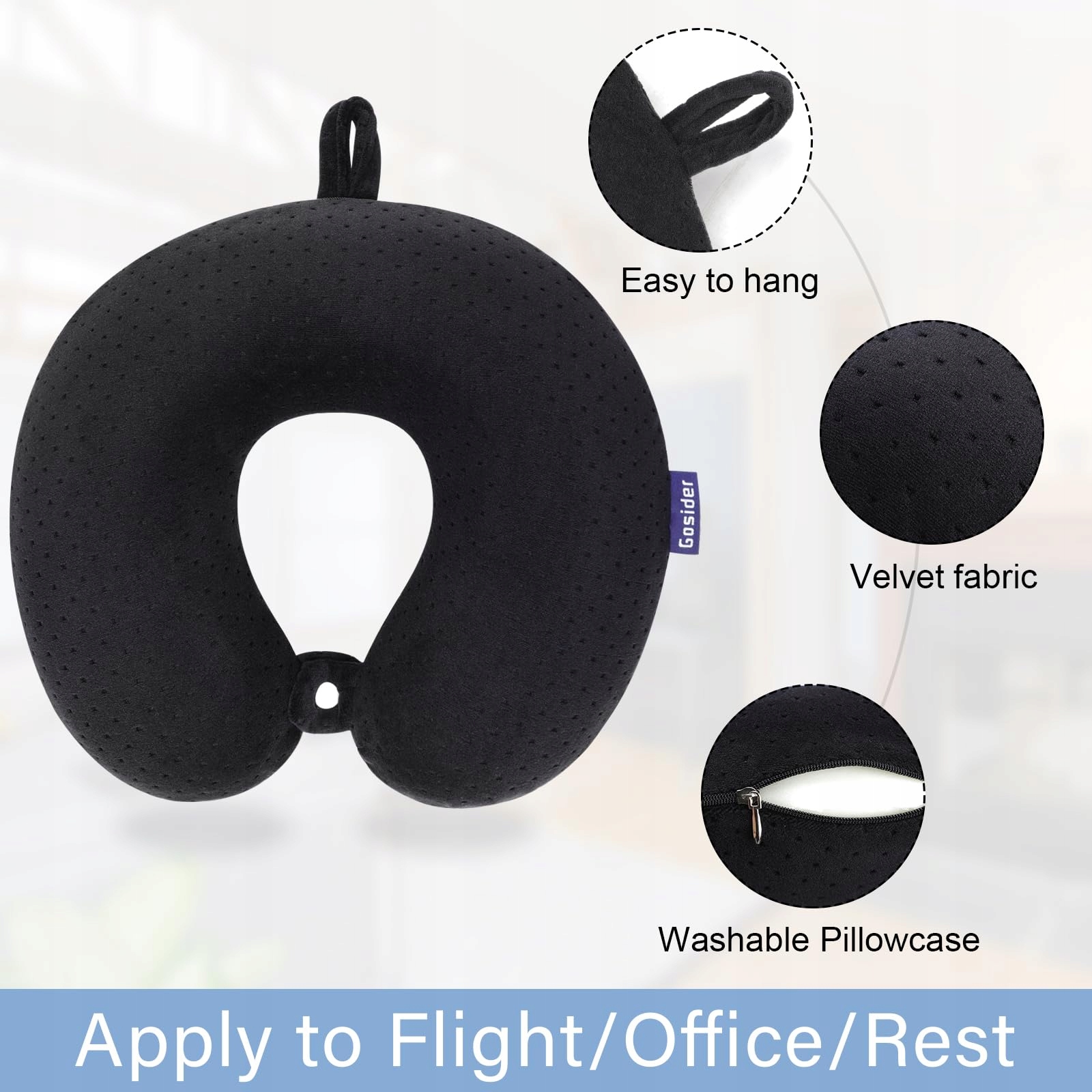 Gosider Czarna Poduszka Podróżna na Szyję z Pianki Memory Foam Poduszka do Samolotu do Wsparcia Szyi i Głowy Miękka przenośna Poduszka w kształcie U do Samolotu, Samochodu i Pracy w Domu