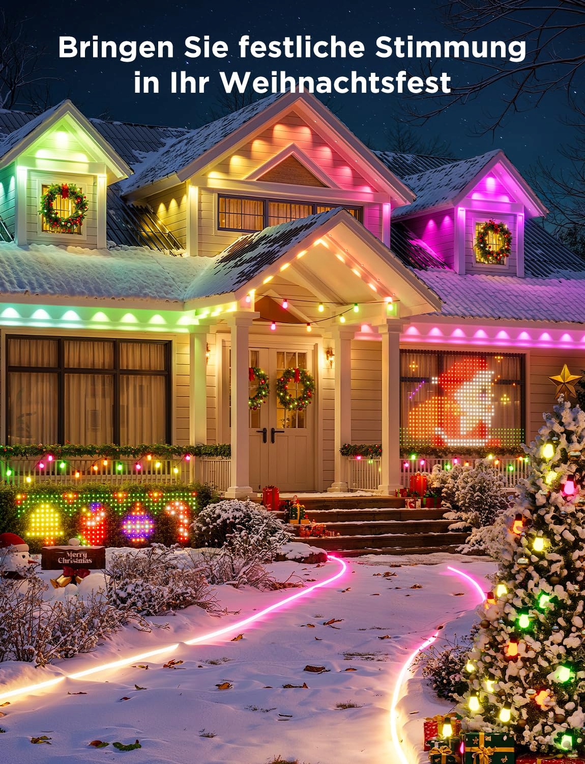 Wyrafinowane oświetlenie RGBIC: Dzięki zaktualizowanemu projektowi LED, Govee Permanentne Światła Zewnętrzne 2 mogą pokazać delikatny i równomierny efekt oświetleniowy, wybrany spośród 16 milionów precyzyjnych opcji kolorów, w tym 40lm białego światła, co poprawia codzienną estetykę i lepsze bezpieczeństwo.