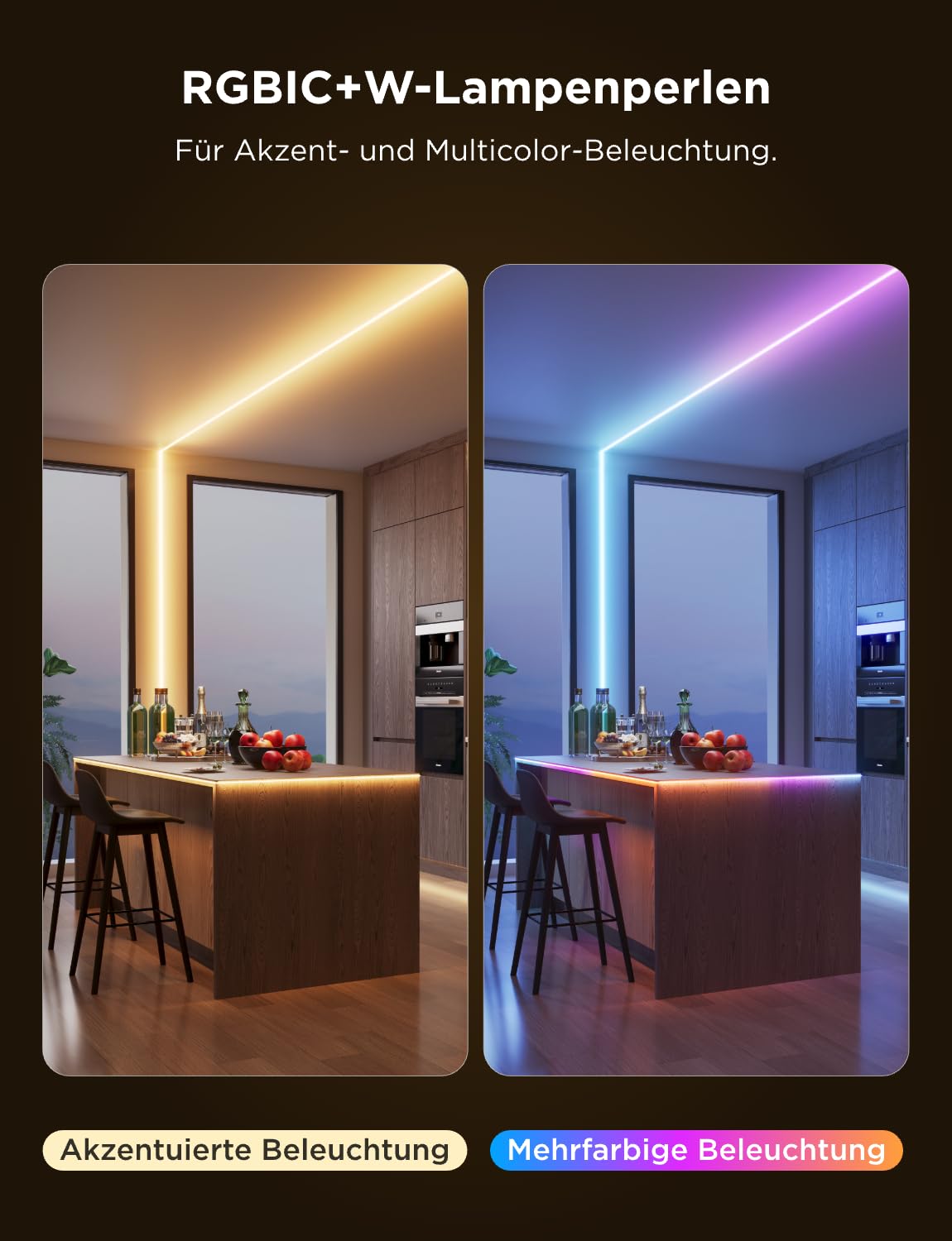 Technologia COB nowej generacji: Govee COB LED Strip 3M 48W wykonane są z zastosowaniem zintegrowanej technologii pakowania, 1260 diod LED/m i 450lm/m, co przekłada się na innowacyjną technologię w jaśniejsze, bardziej jednolite i płynniejsze efekty świetlne, które mogą być używane jako dodatkowe oświetlenie.
