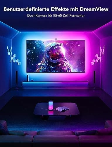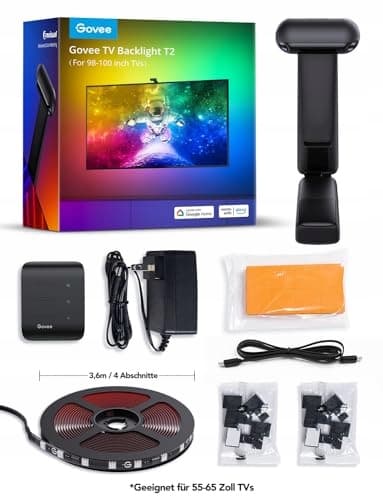Govee Envisual TV podświetlenie tła T2 z podwójną kamerą dla telewizorów 55-65 cali i PC, RGBIC WiFi TV LED podświetlenie tła kompatybilne z Alexą i Asystentem Google do dekoracji