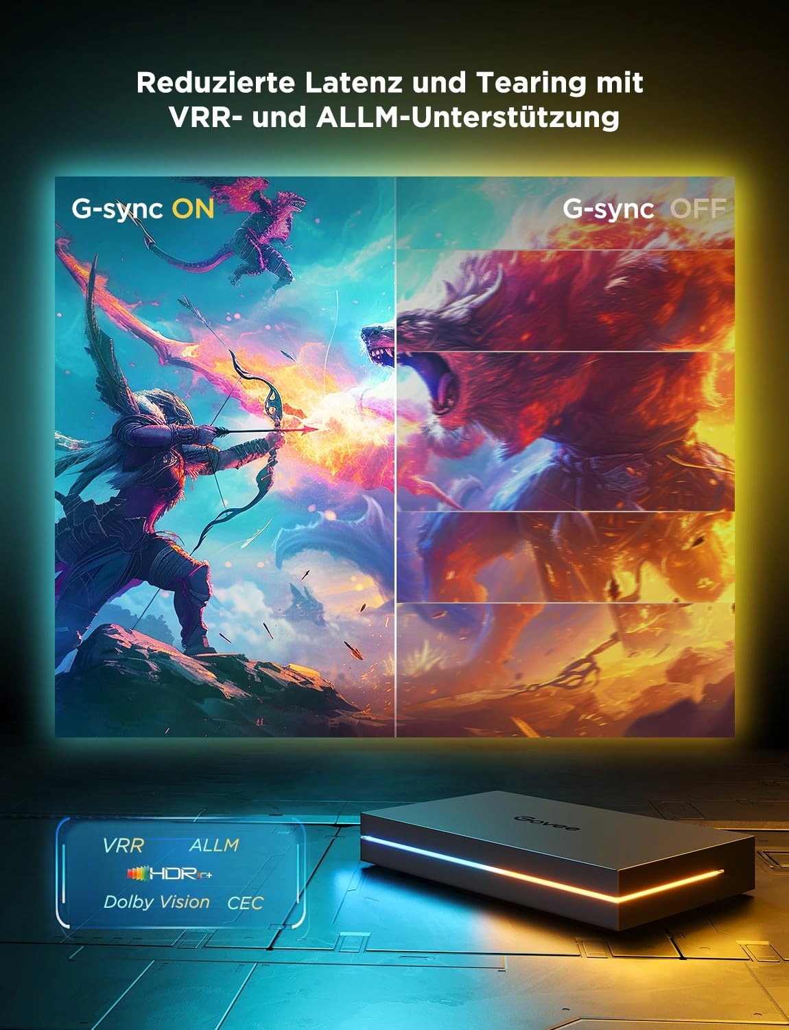 Unikalna technologia CogniGlow: Govee Sync Box wykorzystuje AI do automatycznego rozpoznawania obrazów i tekstu oraz określania warunków wyzwalania, które pasują do określonych efektów świetlnych, oferując tym samym immersyjne doświadczenie w grach.