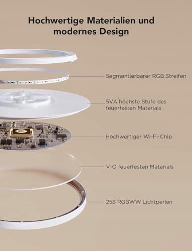 Wysokiej jakości materiały i nowoczesny design: Unikalny design transmisji światła lampy sufitowej Led ściemnialnej i wysokiej jakości chipy zapewniają żywe efekty świetlne RGBIC. Obudowa lampy sufitowej wykonana jest z materiału ognioodpornego klasy 5VA, aby chronić Ciebie i Twój dom.