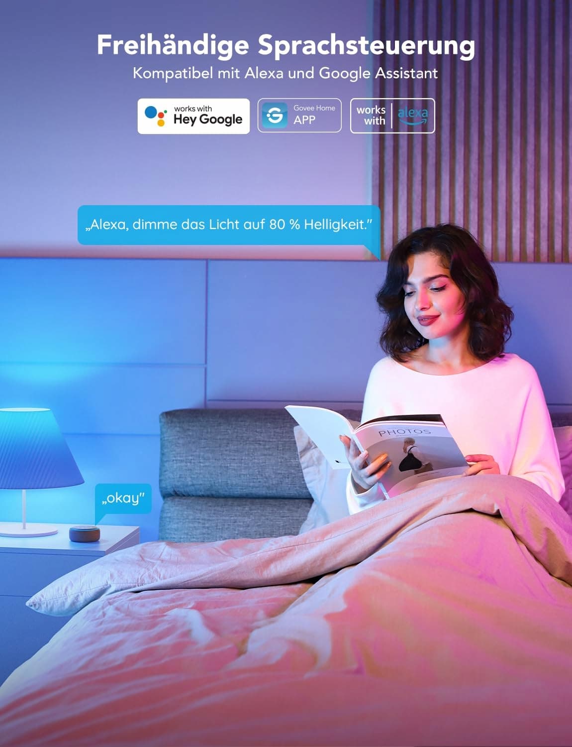 Łatwa inteligentna kontrola: Dzięki stabilniejszemu połączeniu Wi-Fi i Bluetooth możesz zdalnie sterować inteligentnymi żarówkami za pomocą aplikacji Govee Home lub sterować swoimi inteligentnymi żarówkami za pomocą poleceń głosowych przez Alexa lub Google Assistant.