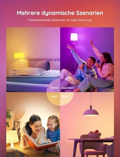 16 milionów kolorów DIY: Govee Smart Żarówka e27 posiada miliony kolorów i 54 wstępnie ustawione tryby scen, możesz odkrywać swoje ulubione, govee lampa led lampy przynoszą prawdziwie fantastyczne doświadczenie świetlne (AC 220-240V).