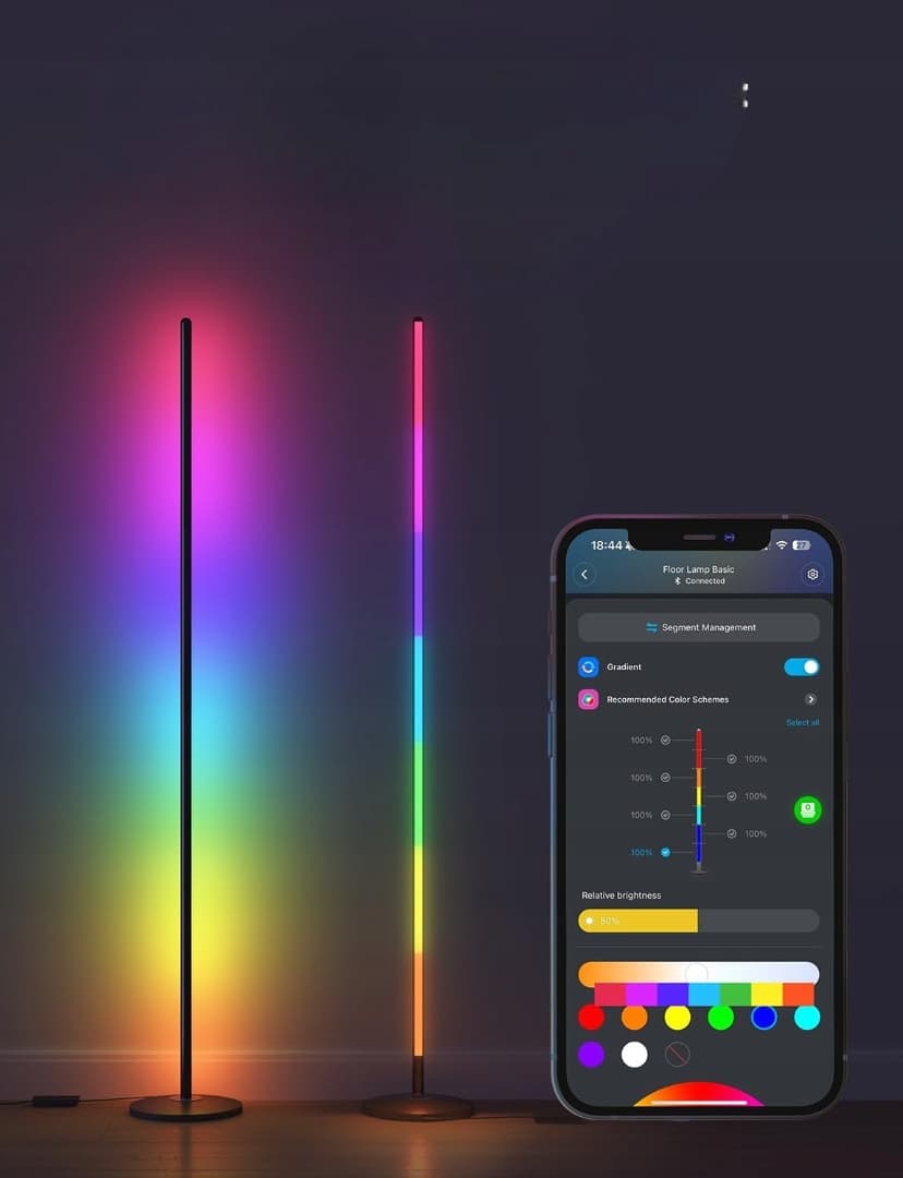 Dynamiczny kolor RGBIC: Uwolnij swoją kreatywność dzięki technologii Govee RGBIC i możesz dostosować każdy segment kolorystycznie do emocji i festiwalu. Zaleca się skierowanie ściemnialnej lampy podłogowej w salonie w stronę ściany.