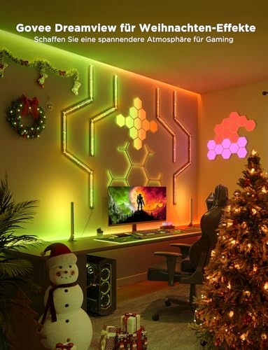 DIY efekty świetlne RGBIC: Dzięki 16 milionom efektów świetlnych RGBIC i 61 trybom scen, Govee LED Gaming Light generuje różne pożądane efekty świetlne, umożliwiając osobne sterowanie oświetleniem przedniego panelu i linii rozpraszających na kinkiecie.