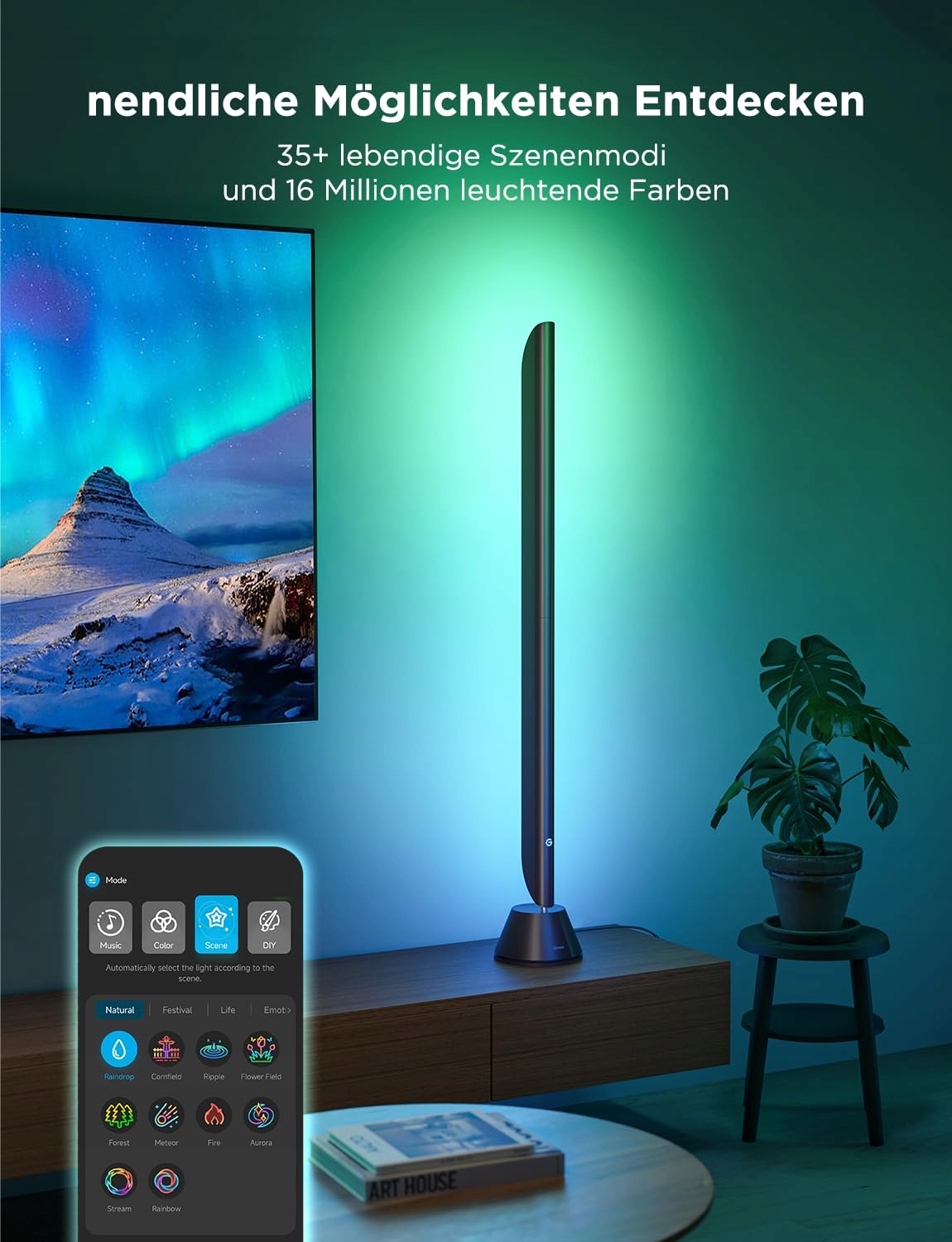 Ulepszony design: Każda Govee RGBIC LED Lightbar jest wyposażona w 41 diod świetlnych. Zakrzywiona o 215° powierzchnia emisji światła w połączeniu z soczewką podwaja jasność i rozprzestrzenianie się efektów świetlnych