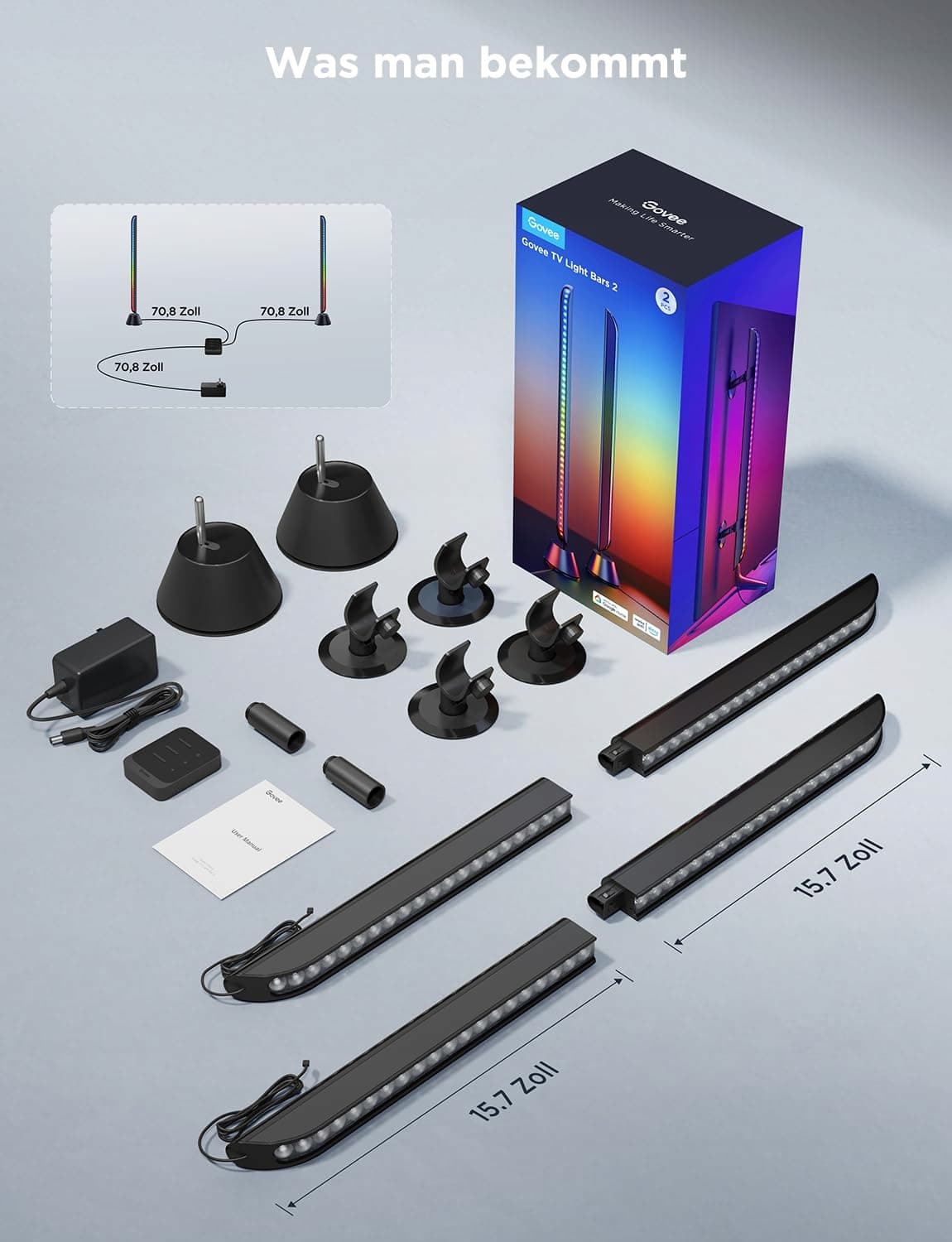 Govee LED Lightbar, 31 cali RGBIC TV Lichtleiste, TV Backlight dla telewizorów 70-85 cali, Light Bar do dekoracji świątecznych, współpracuje z Alexa i Google Assistant, 2 opakowania