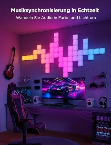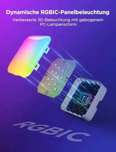 RGBIC-mini-panele: Zakrzywiony przezroczysty klosz z PC nadaje panelom LED dynamiczny trójwymiarowy styl, podczas gdy technologia RGBIC prezentuje żywe kolory pojedynczej lampy chipowej.