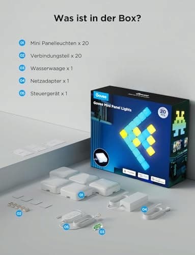 GOVEE Mini Panele LED Do Ścian Zestaw 20 Sztuk Sterowanie Głosowe i Muzyką | Premium Supply
