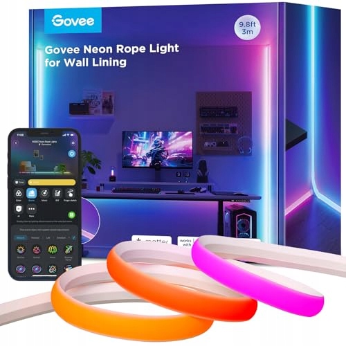 GOVEE Neonowy Pasek LED RGBIC 3M Do Ścian i Kątów Z Synchronizacją Muzyki