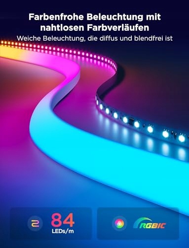 Większy obszar oświetlenia: Dzięki swojej półokrągłej formie, która tworzy obszar świetlny o szerokości 22,5 mm, pasek LED Govee 3m można bezproblemowo zintegrować z krawędziami ścian. Dzięki silikonowej osłonie, to neonowe światło zapewnia nie tylko nowoczesną estetykę, ale także łagodne światło, które chroni oczy.