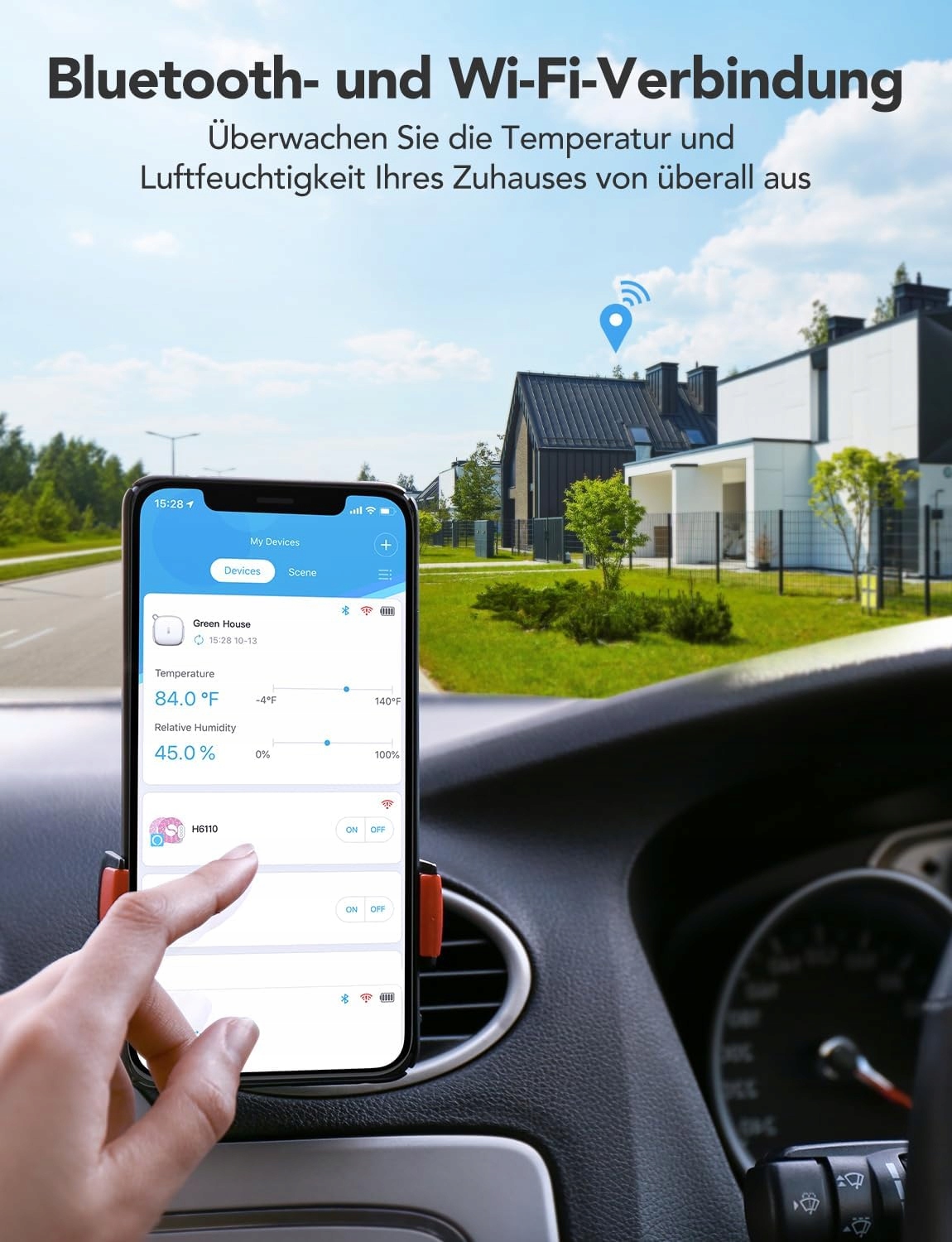 Łatwe monitorowanie: Dzięki stabilnemu połączeniu WLAN / Bluetooth przez aplikację Govee Home możesz monitorować temperaturę i wilgotność w czasie rzeczywistym i reagować na ich zmiany na czas. (obsługuje tylko Wi-Fi 2,4 GHz)