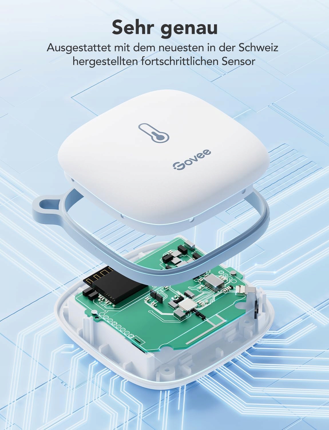 Łatwe do ustawienia: Dzięki pętli na rękę możesz umieścić termohigrometr wszędzie. Zawartość opakowania: 2 × Govee Termohigrometr, 1 × Pętla na rękę, 1 × Instrukcja obsługi, 6 × Baterie AA (już w zestawie).