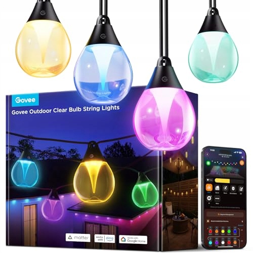 Govee Girlanda świetlna na zewnątrz, 15M ściemnialna RGBWIC LED girlanda świetlna z 16 milionami kolorów i 111 trybami scen, 80 lm na diodę LED, żywotność 25 000 godzin, działa z Alexa, Google Assistant, Matter