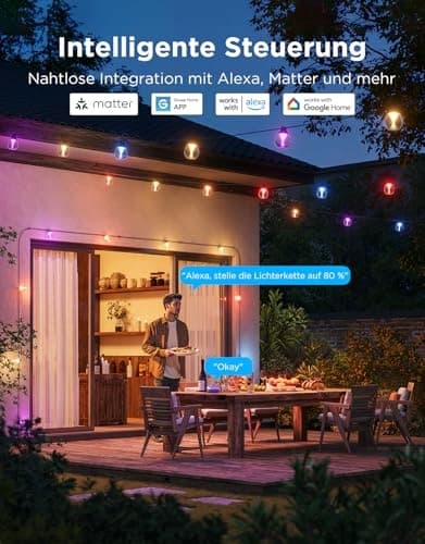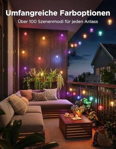 Jasne ciepłe białe światło: Z całkowitą jasnością 1200 lm girlanda świetlna na zewnątrz idealnie nadaje się do ukierunkowanego oświetlenia stref relaksu na zewnątrz, takich jak tarasy i altany. Jasne, ciepłe światło tworzy w każdym pomieszczeniu przyjemną i relaksującą atmosferę.