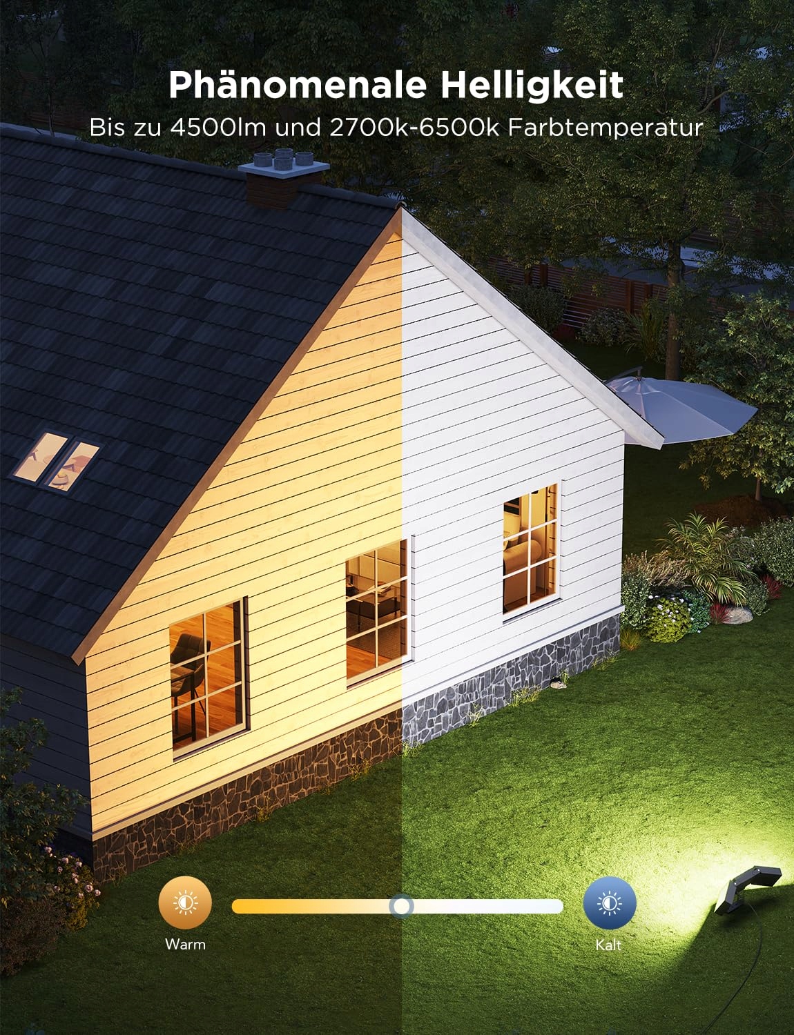 Trwały design: Reflektor LED IP66 & skrzynka sterująca IP67 & adapter IP44 zapewniają solidną ochronę przed wszelkimi warunkami pogodowymi. Wykonane ze stopu aluminium dla odprowadzania ciepła i trwałości, wytrzymuje siły zewnętrzne do 4-krotności własnej wagi.