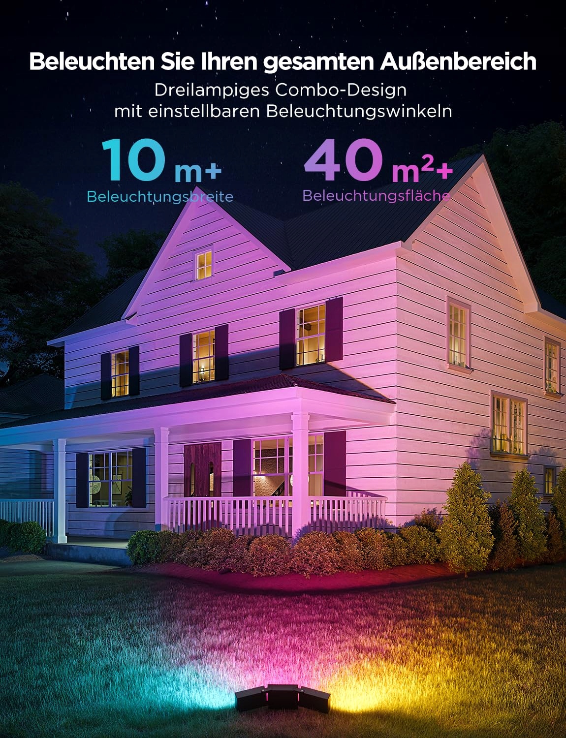 Govee Outdoor Triade LED Reflektor, RGBIC Reflektor Zewnętrzny z 4500LM Ciepłym i Zimnym Białym, Stop Aluminium, IP66 Wodoodporny, Inteligentne Reflektory Działa z Matter, Alexa & Google Assistant