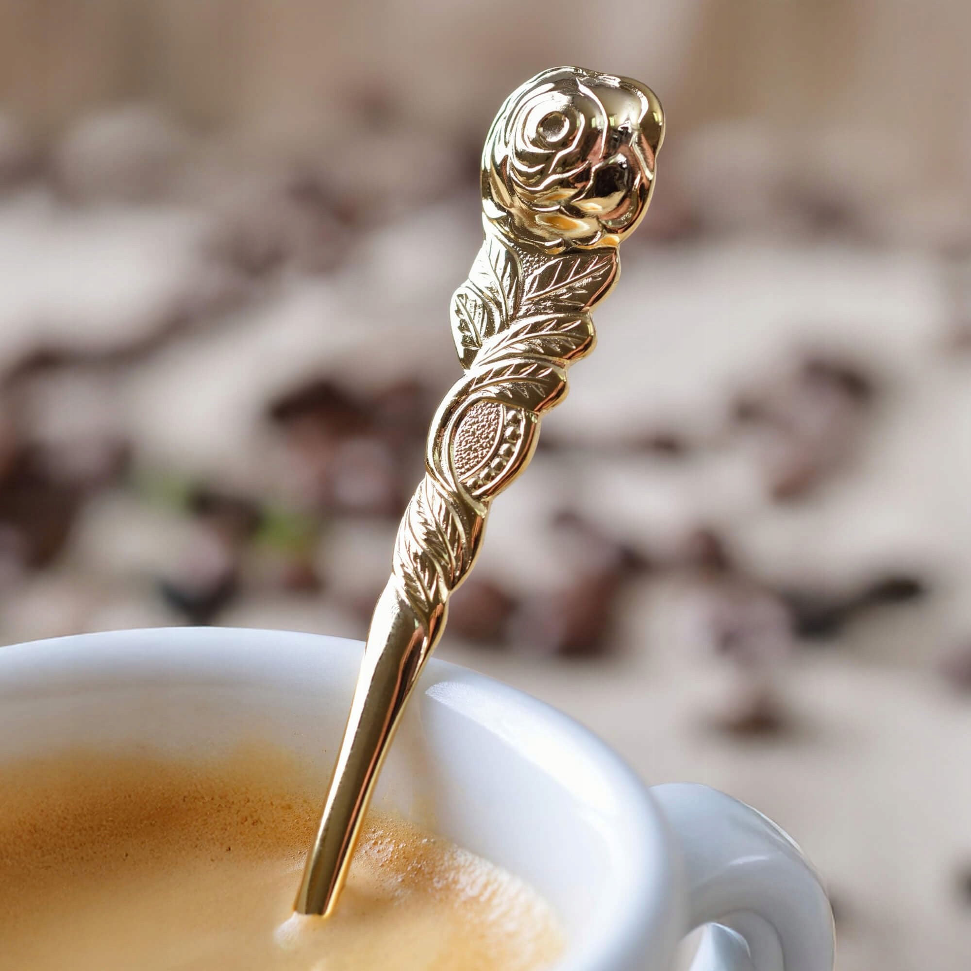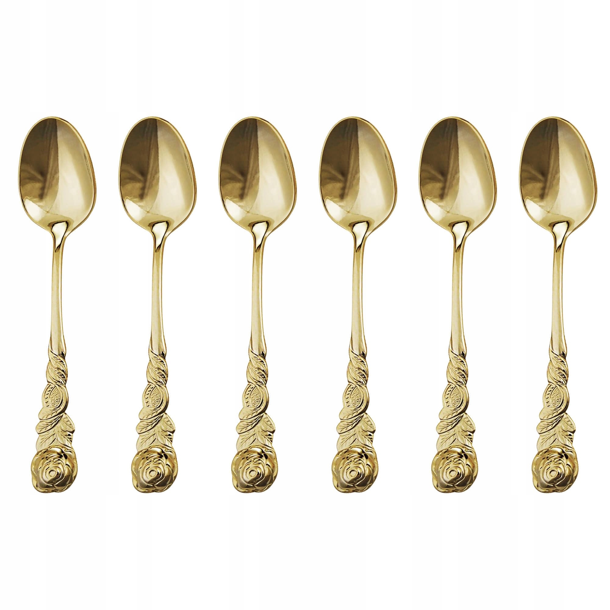 GRÄWE łyżeczki do espresso 6-częściowe, stal nierdzewna, seria dekor różany, złote