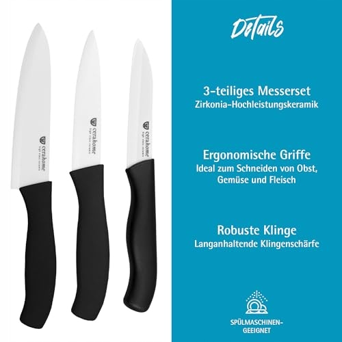 Zestaw noży ceramicznych GRÄWE, ostry, 3-częściowy zestaw noży, noże kuchenne, noże do warzyw i noże szefa kuchni z ceramiki - seria Cerahome