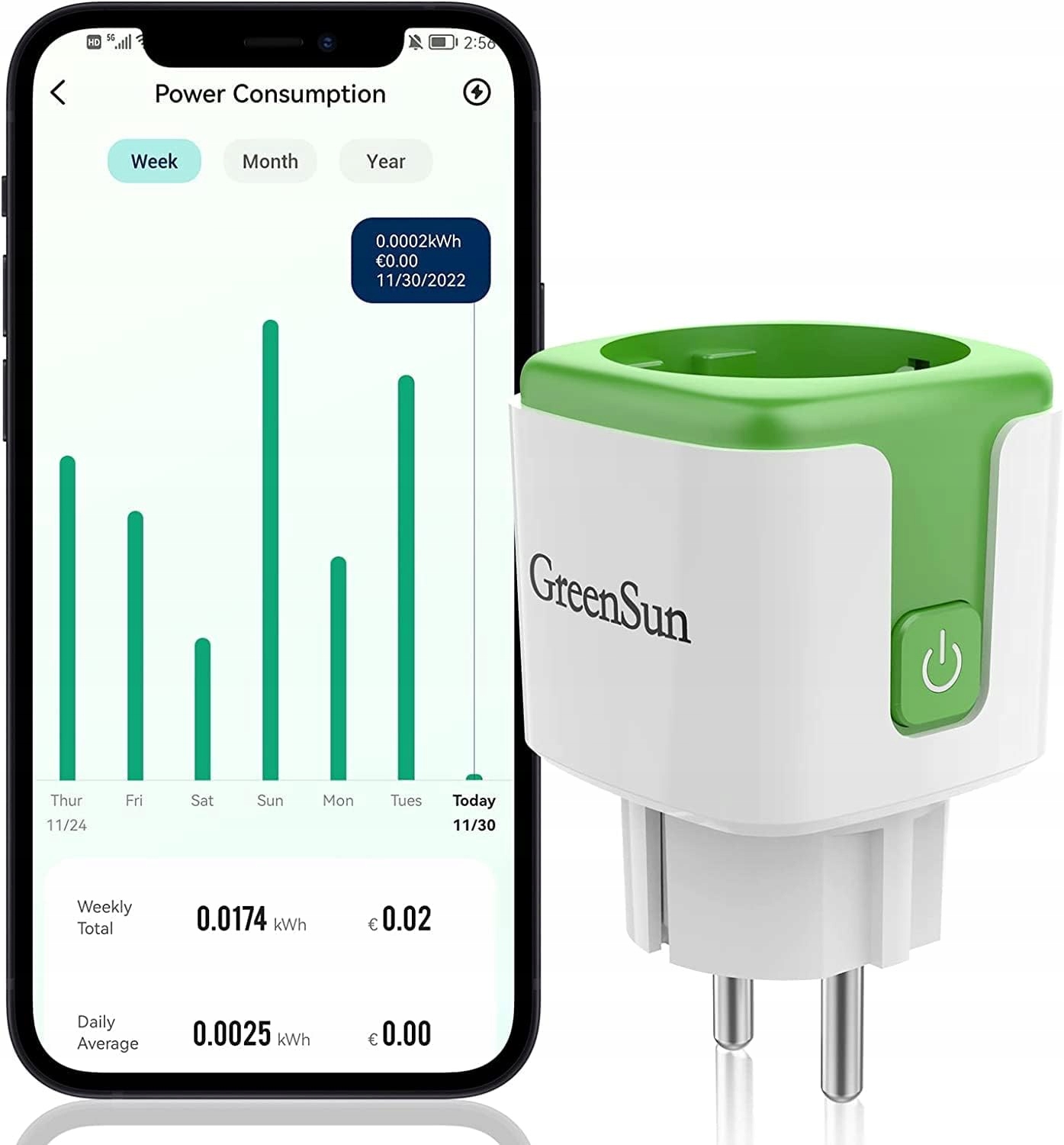 GREENSUN Gniazdko WLAN Z Pomiarem Energii Sterowanie Głosowe Alexa 16A | Premium Supply