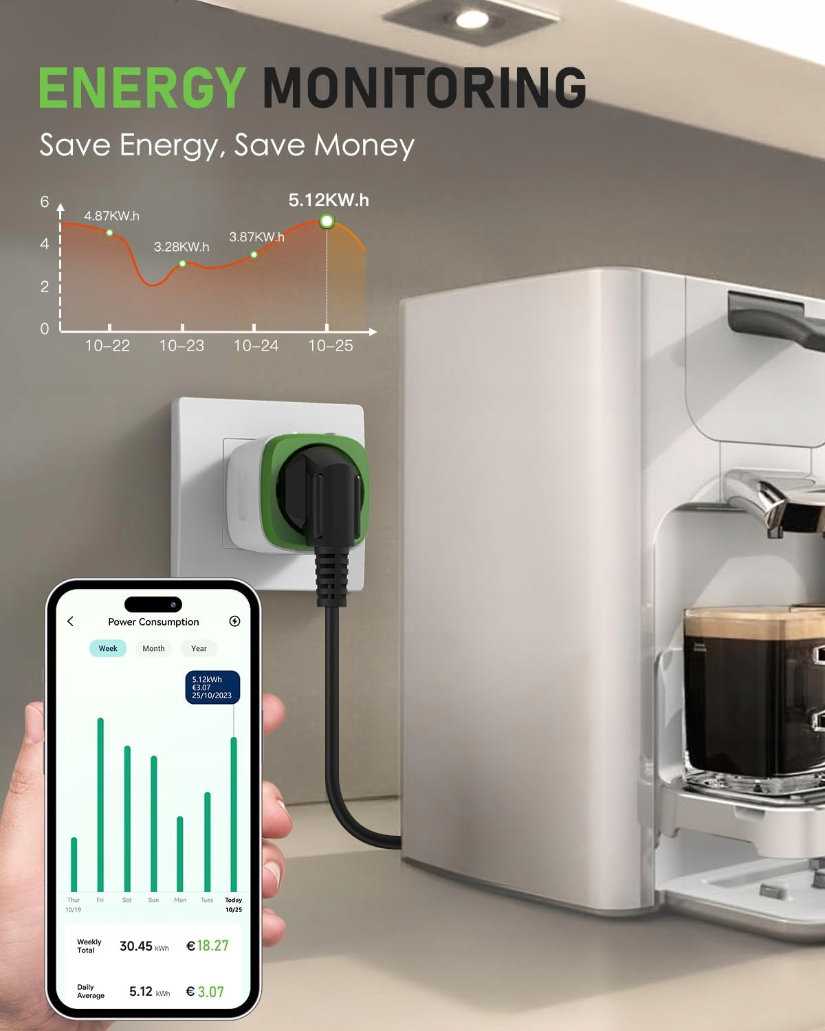 GREENSUN Inteligentne Gniazdko WiFi Z Pomiarem Energii Kompatybilne Z Alexa | Premium Supply