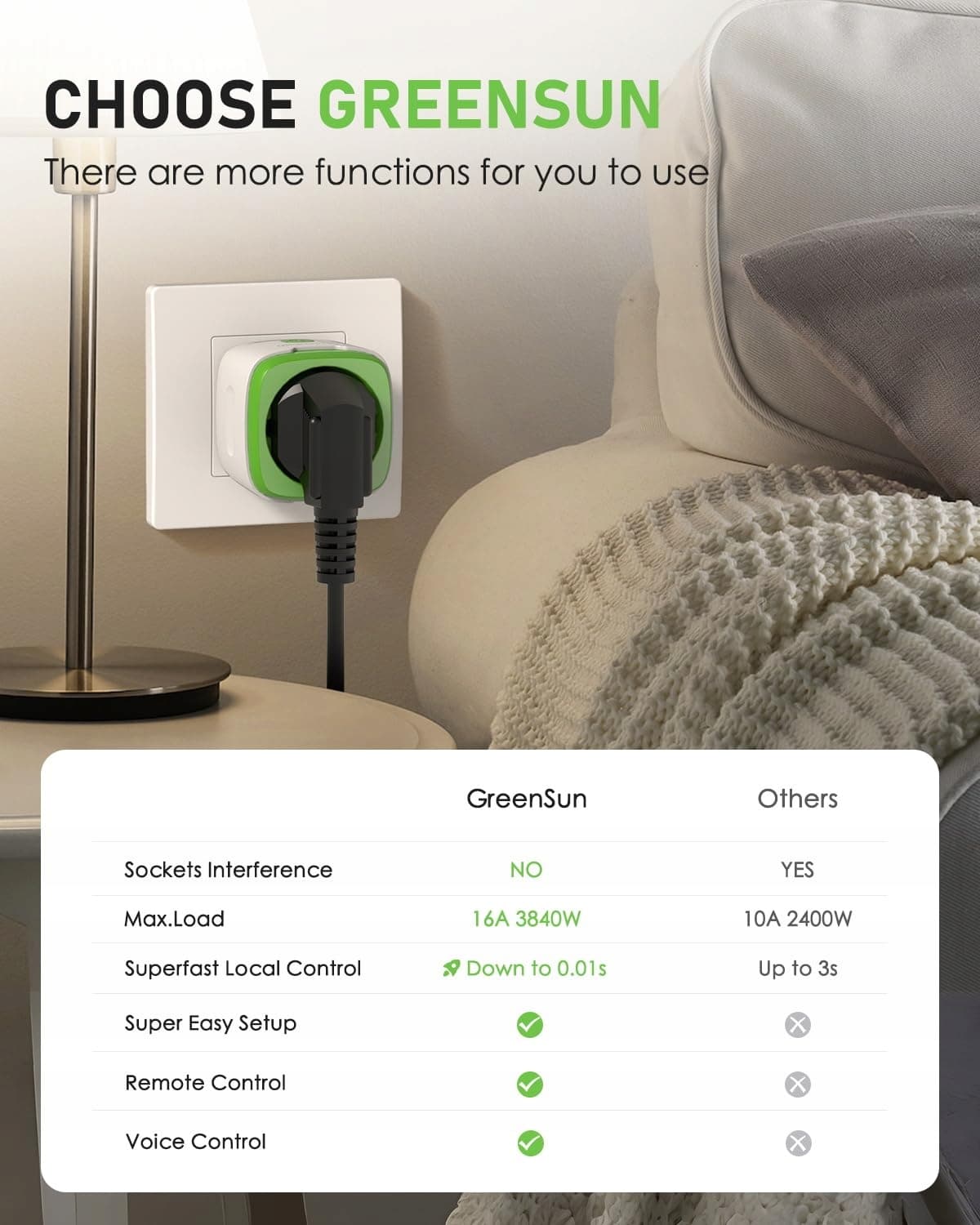 GREENSUN Inteligentne Gniazdko WiFi Z Pomiarem Energii Kompatybilne Z Alexa