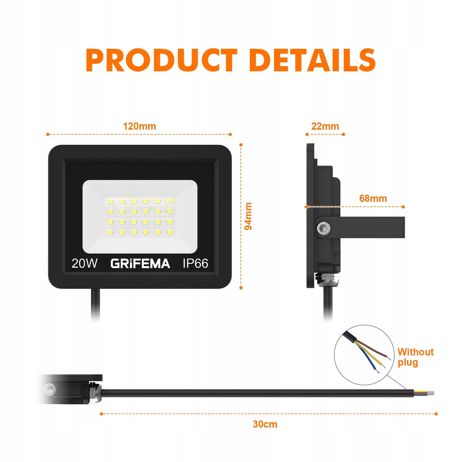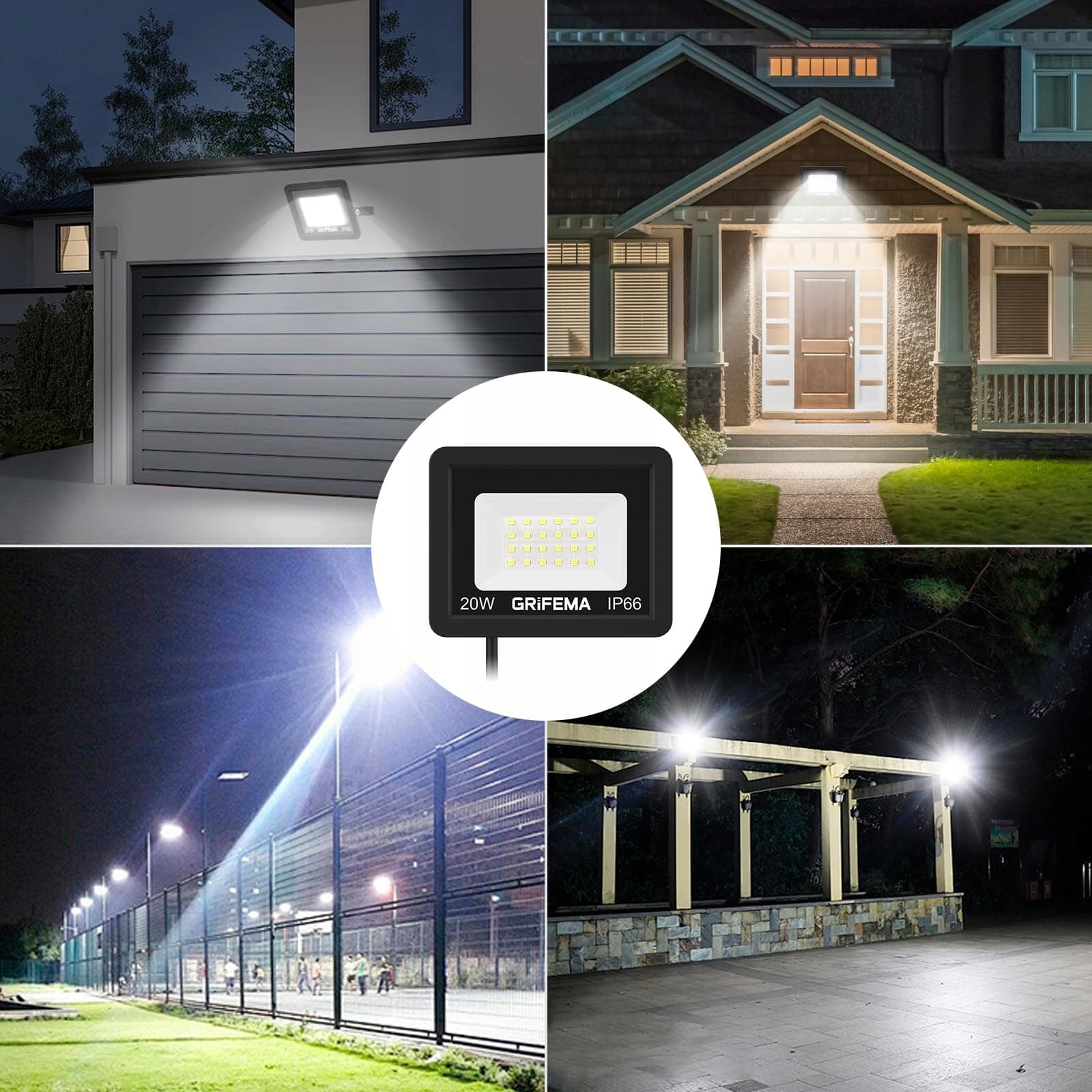 GRIFEMA Reflektor LED 20W 2200LM 6500K IP66 Wodoodporny Do Ogrodu Garażu | Premium Supply