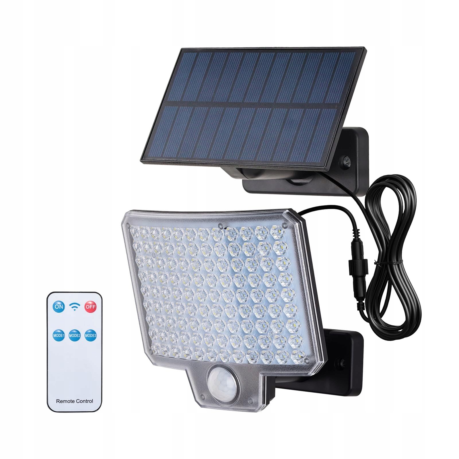 [3 tryby oświetlenia i pilot]: Lampy solarne do użytku zewnętrznego z wbudowanym czujnikiem światła i czujnikiem ruchu PIR z odległością wykrywania ruchu 3–5 m i kątem wykrywania 180°. 3 tryby oświetlenia: tryb wykrywania ruchu, tryb wykrywania zmierzchu i tryb stałego światła.
