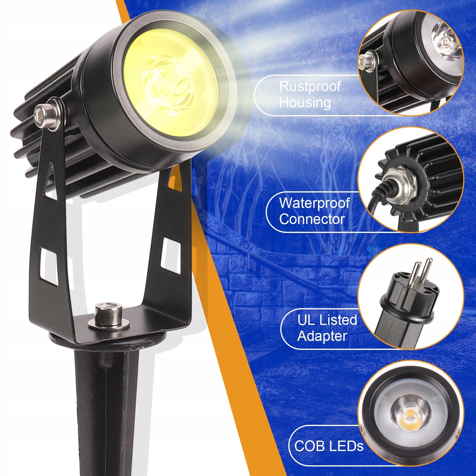 💡【Łatwa instalacja】Nie wymaga skomplikowanego montażu. Mocowanie kołków do ziemi jest proste i wygodne. Dzięki dodatkowo długiemu kablowi o długości 13 m (3 m odstępu między lampami) możesz elastycznie umieścić reflektor na tarasie, ścieżce/ogrodzie lub w dowolnym miejscu.