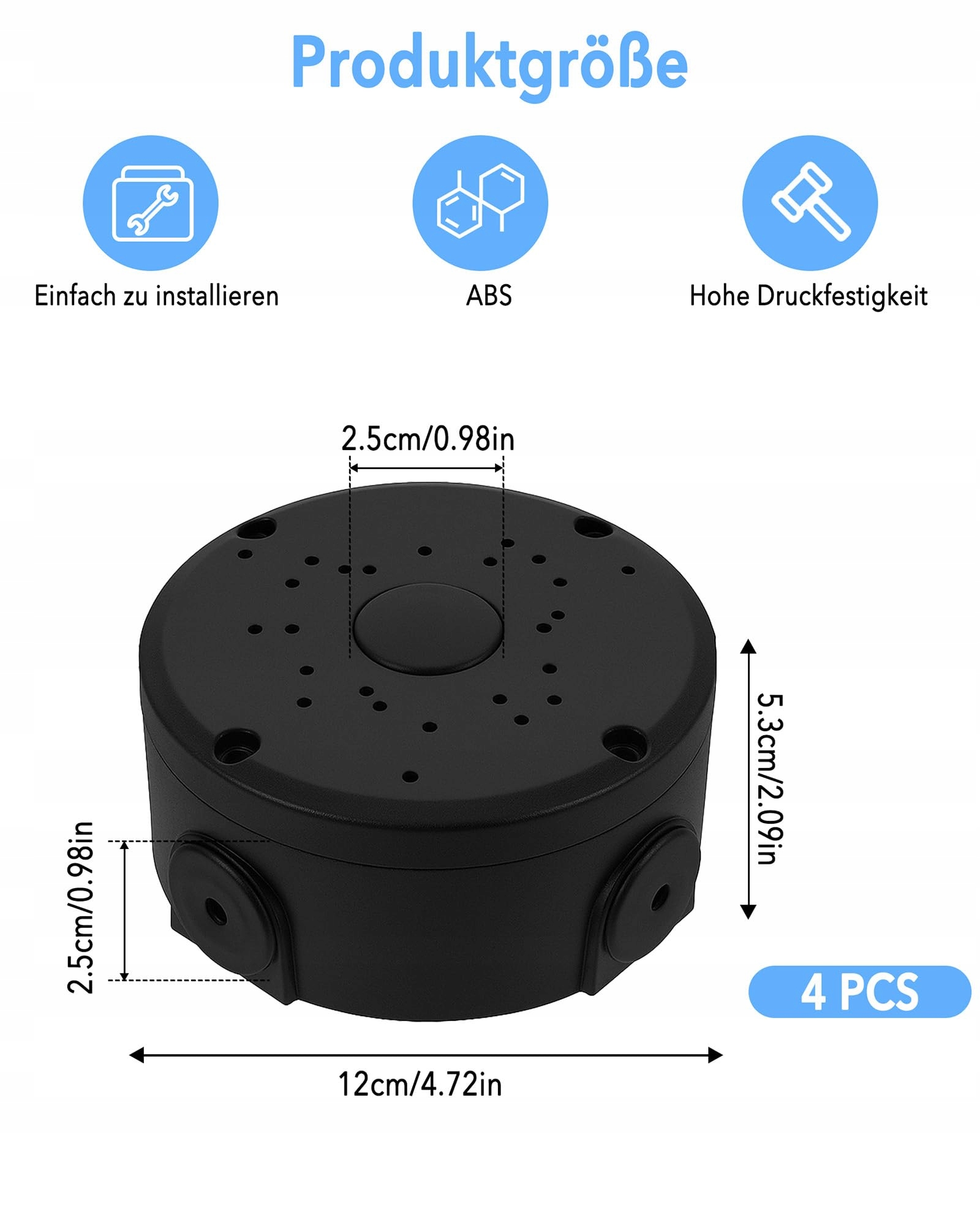 GWAEPU 4 sztuki wodoodporna puszka przyłączeniowa do kamery: Półkulista obudowa montażowa do kamery ABS, puszka rozgałęźna do użytku wewnętrznego i zewnętrznego (czarna)