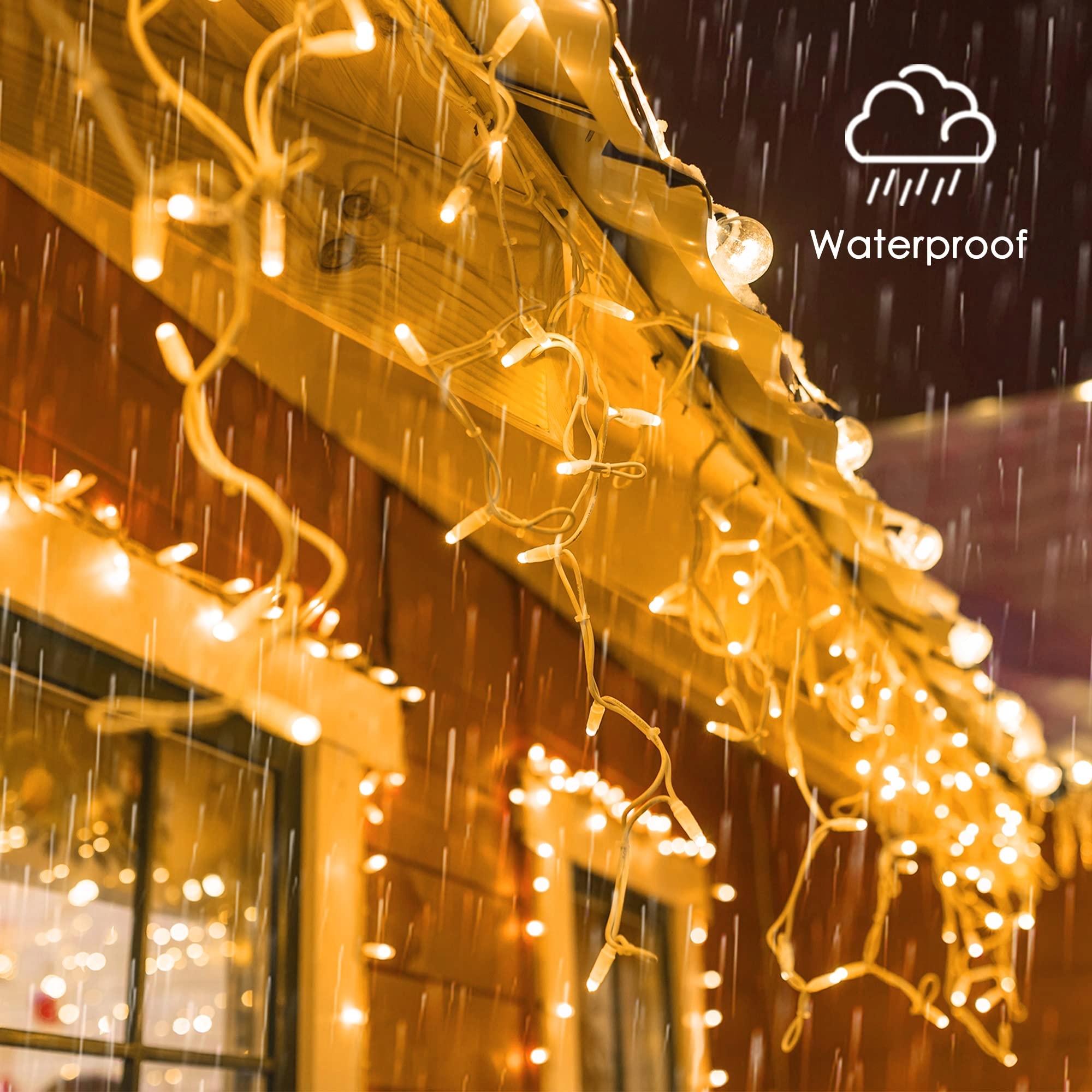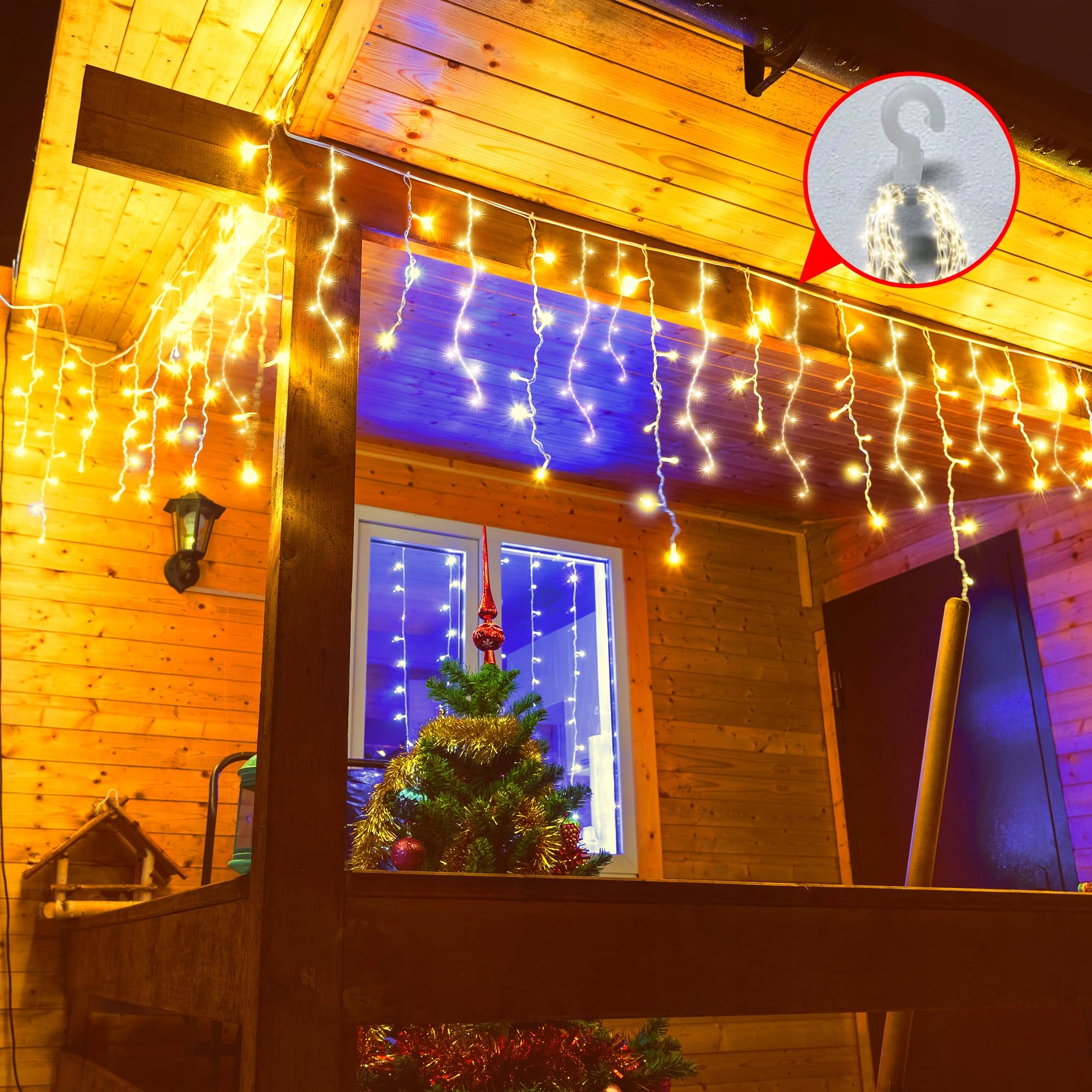 [Dekoracja świąteczna z lampkami]: Lampki choinkowe w kształcie sopli lodu na zewnątrz są najlepszym wyborem do dekoracji świątecznej i nadają imprezom, Halloween, Bożemu Narodzeniu, Dziękczynieniu i Nowemu Rokowi świąteczną atmosferę. Odpowiednie na różne okazje w pomieszczeniach i na zewnątrz, takie jak domy, ogrody, balkony, schody, okapy, okna itp. Można poczuć męską aurę i świąteczną atmosferę wokół.