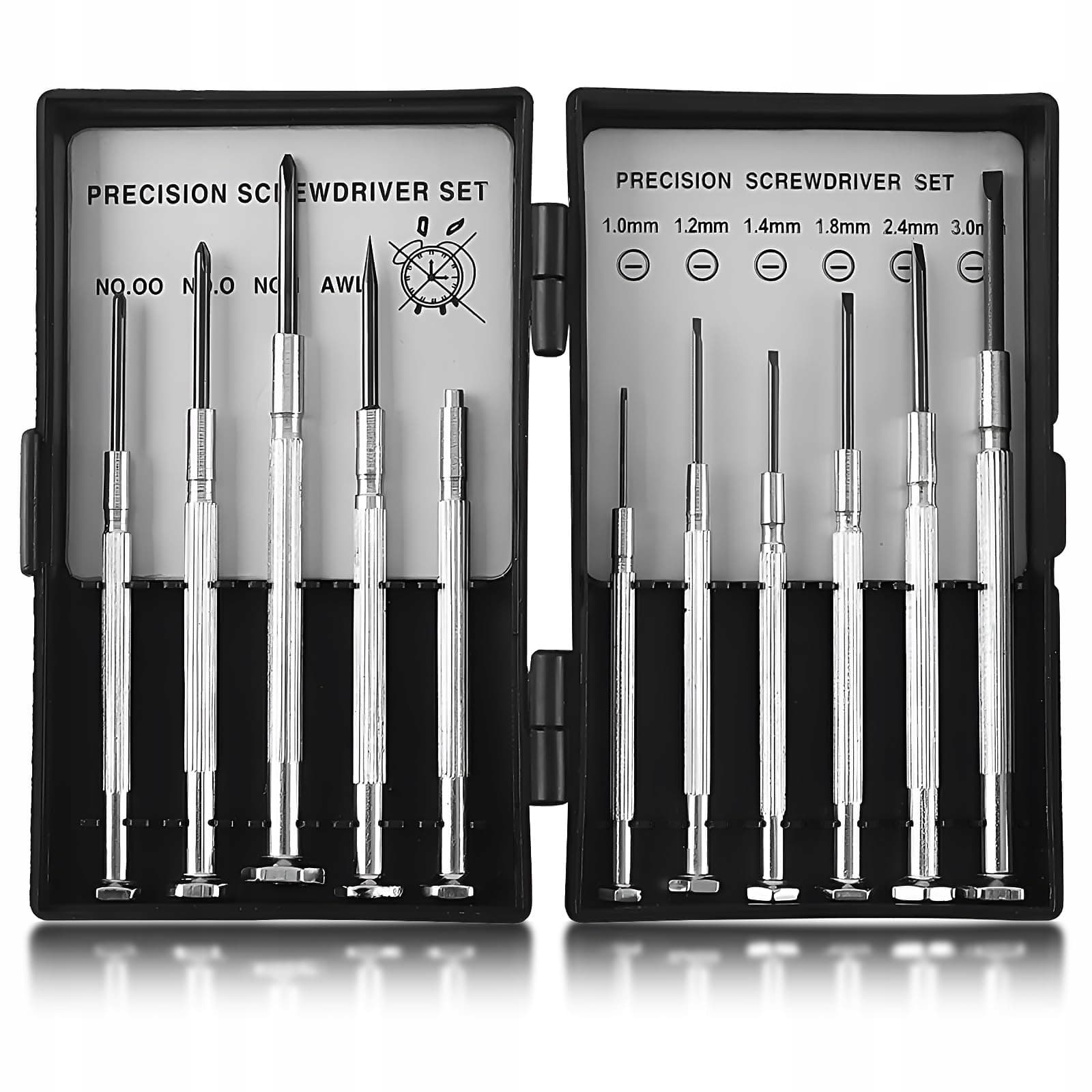 Pełne wyposażenie: Zawiera 3 wkrętaki krzyżowe (PH00, PH0, PH1), 6 wkrętaków płaskich (1.0-3.0mm), 1 wkrętak precyzyjny i 1 wkrętak magnetyczny