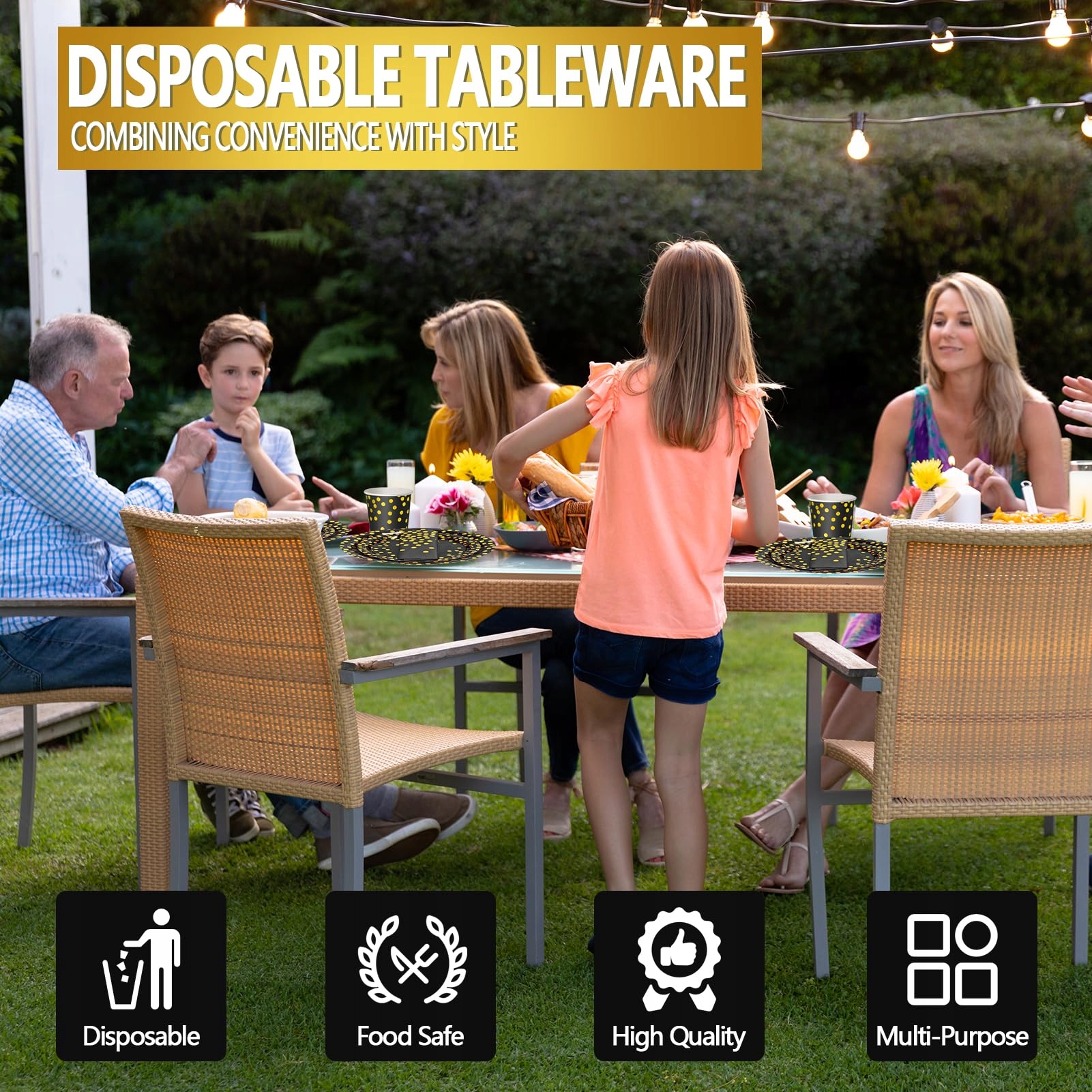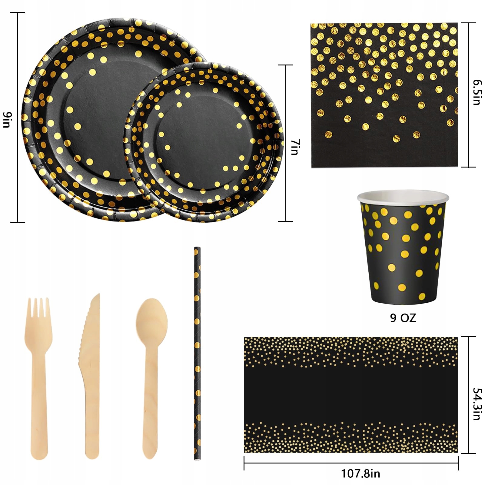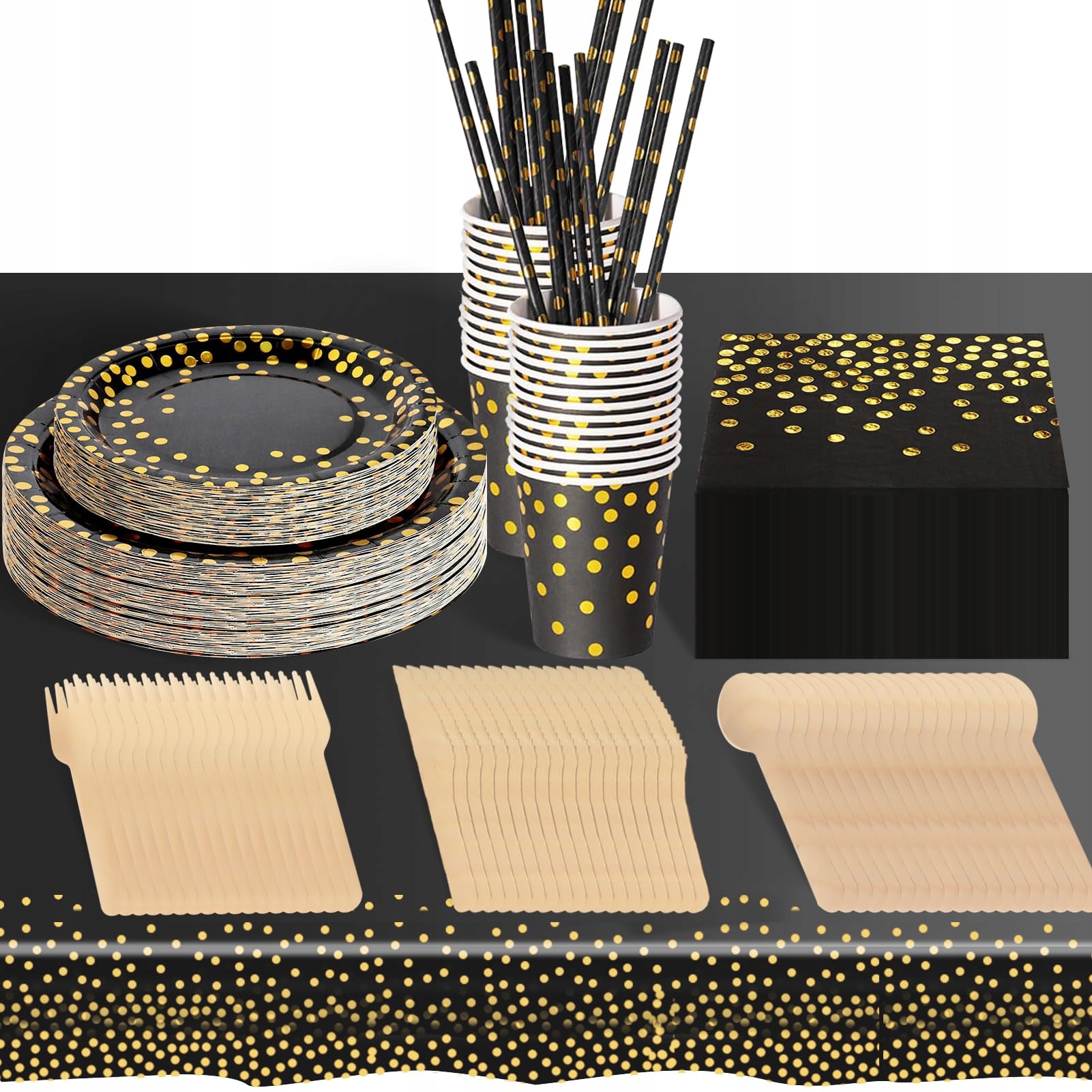HAILSTONES Zestaw Naczyń Jednorazowych 226 Sztuk Czarny Złoty Na 25 Osób