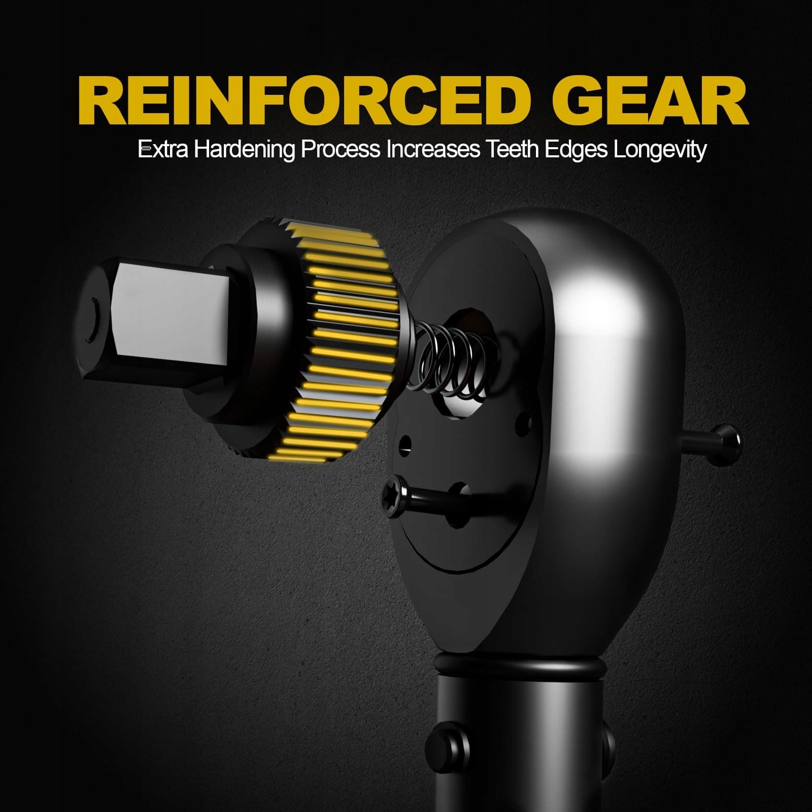 72-zębowy klucz z przełącznikiem – Wzmocniona głowica zapadkowa wykonana jest z utwardzonej i poddanej obróbce cieplnej stali stopowej chromowo-molibdenowej. Mechanizm szybkiego zwolnienia klucza dynamometrycznego zapewnia pewne mocowanie i umożliwia szybkie wymienianie nasadek.