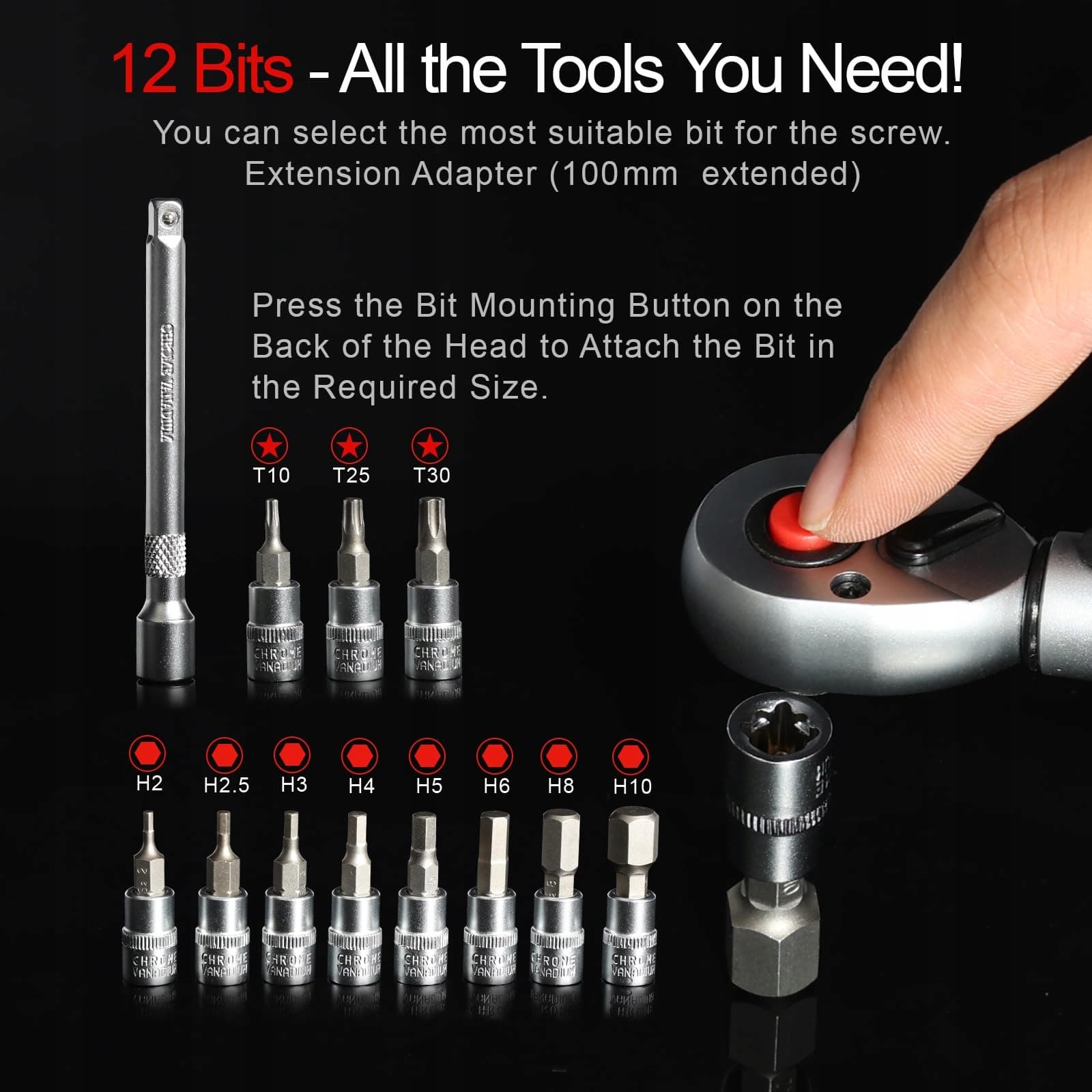 Wszechstronnie stosowany – Zestaw grzechotkowy idealnie nadaje się do konserwacji rowerów, rowerów górskich i motocykli, szczególnie do prac przy mostkach, zaciskach siodeł, zaciskach dźwigni, rotorach, zestawach łańcuchowych i korbach. Ponadto klucz dynamometryczny może być również używany do naprawy i instalacji urządzeń gospodarstwa domowego, elektrotechniki, montażu produktów, napraw mechanicznych oraz w codziennym życiu.