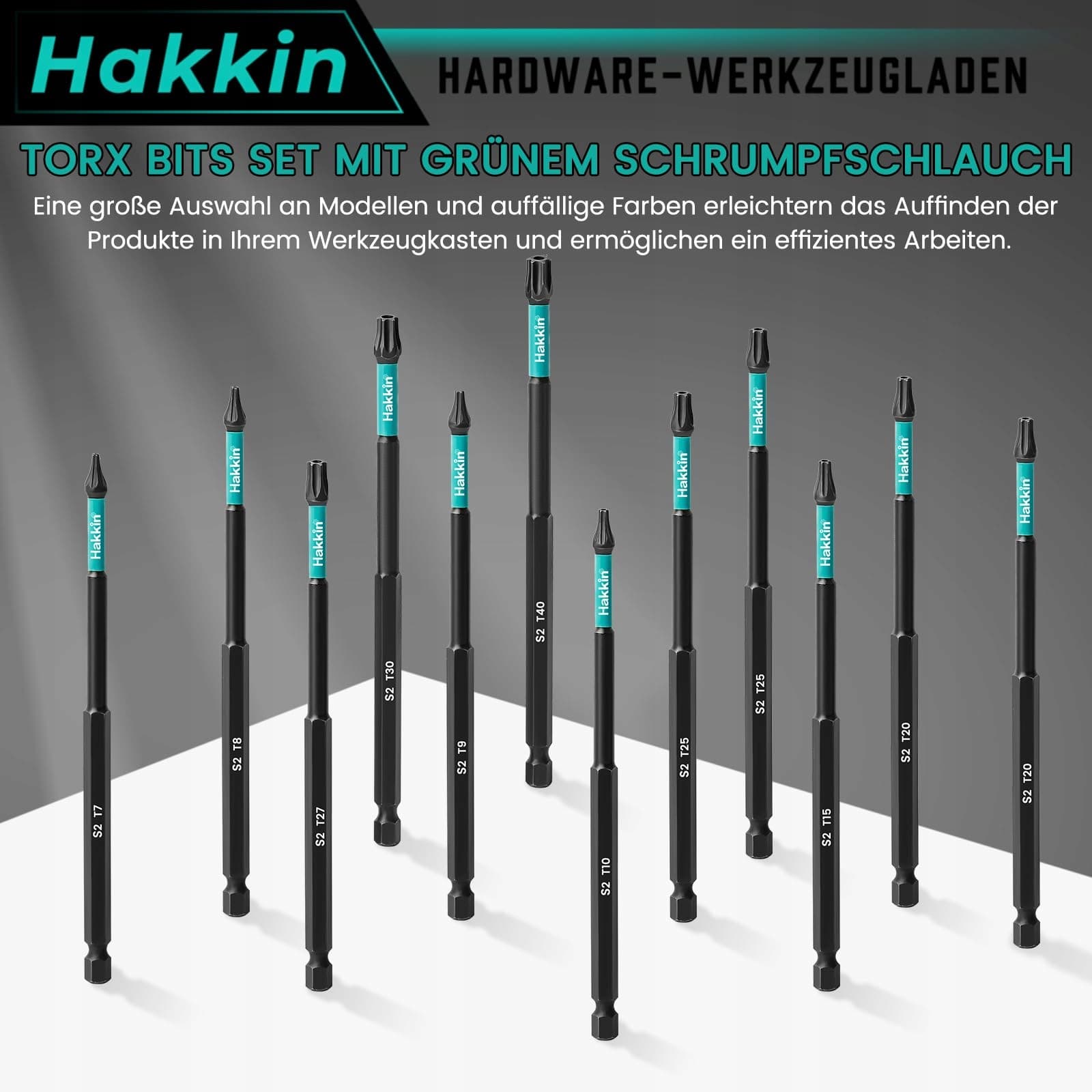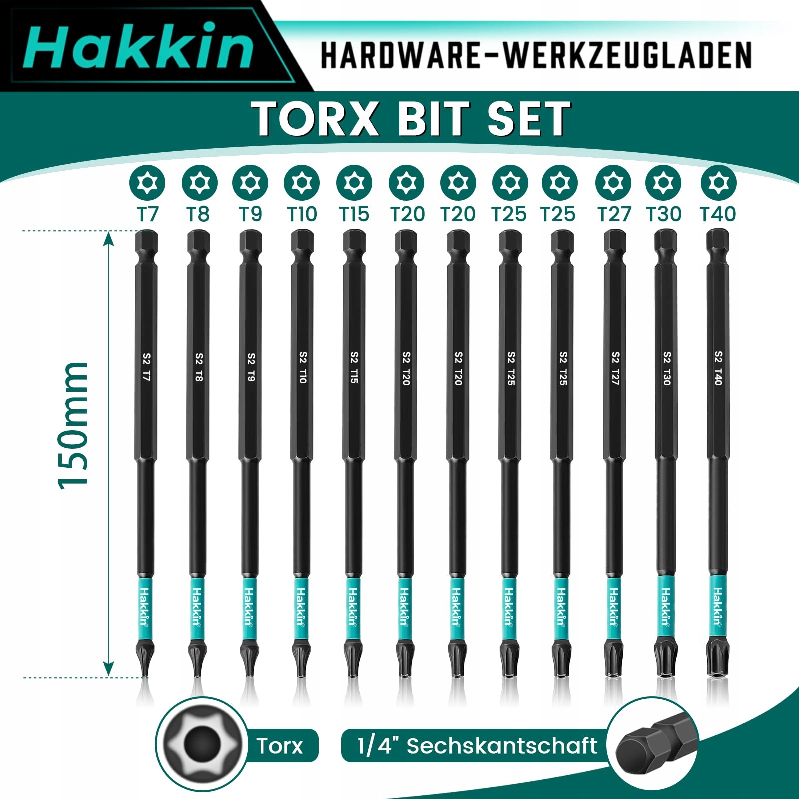 HAKKIN Zestaw Długich Bitów Torx 150 mm 12 Sztuk Do Wkrętarek 1/4" S2