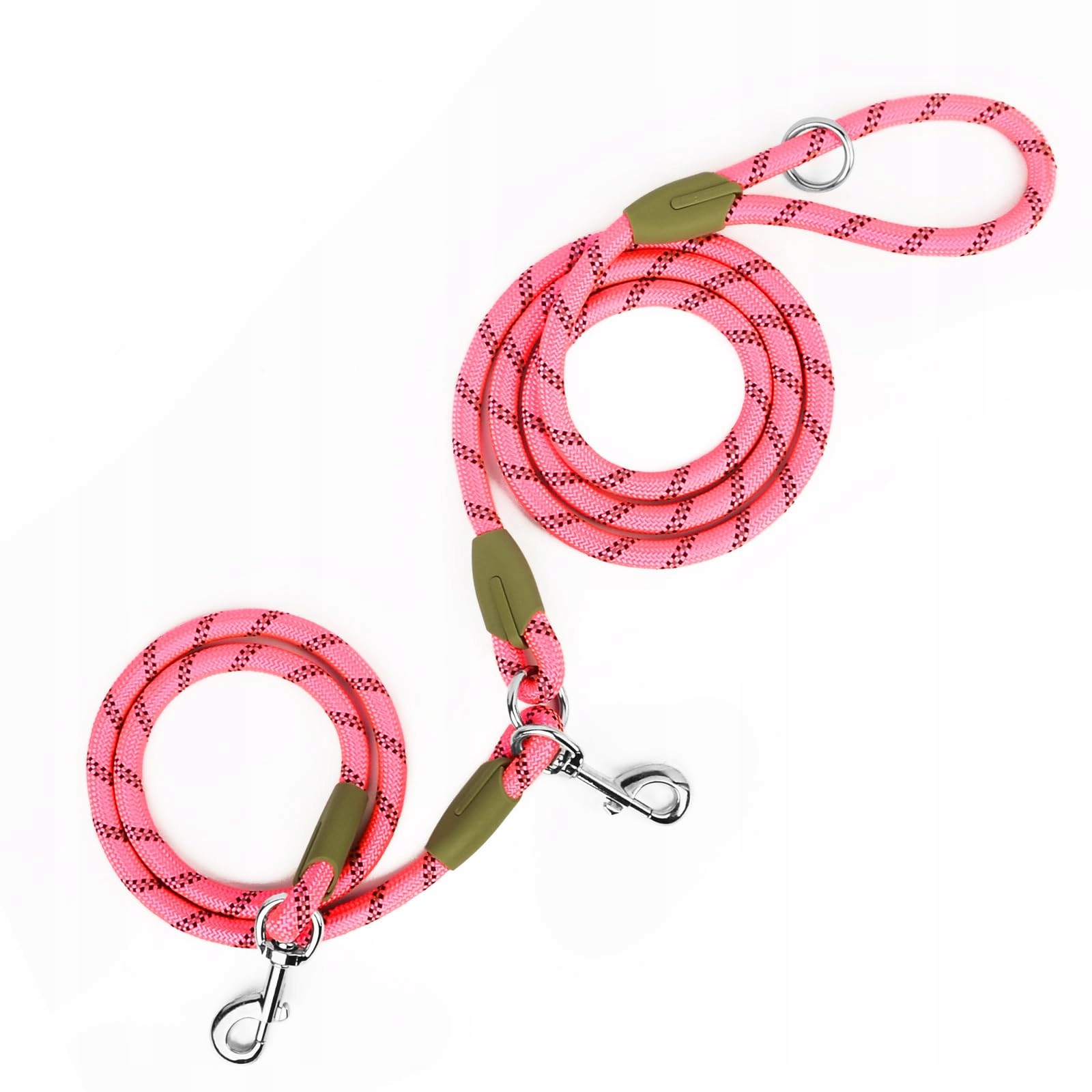 Z dwoma obrotowymi karabińczykami 360° i trzema pętlami, ta smycz może być używana jako długa lub krótka smycz, do prowadzenia dwóch psów, sportowa smycz do joggingu, bezobsługowa smycz dla psa