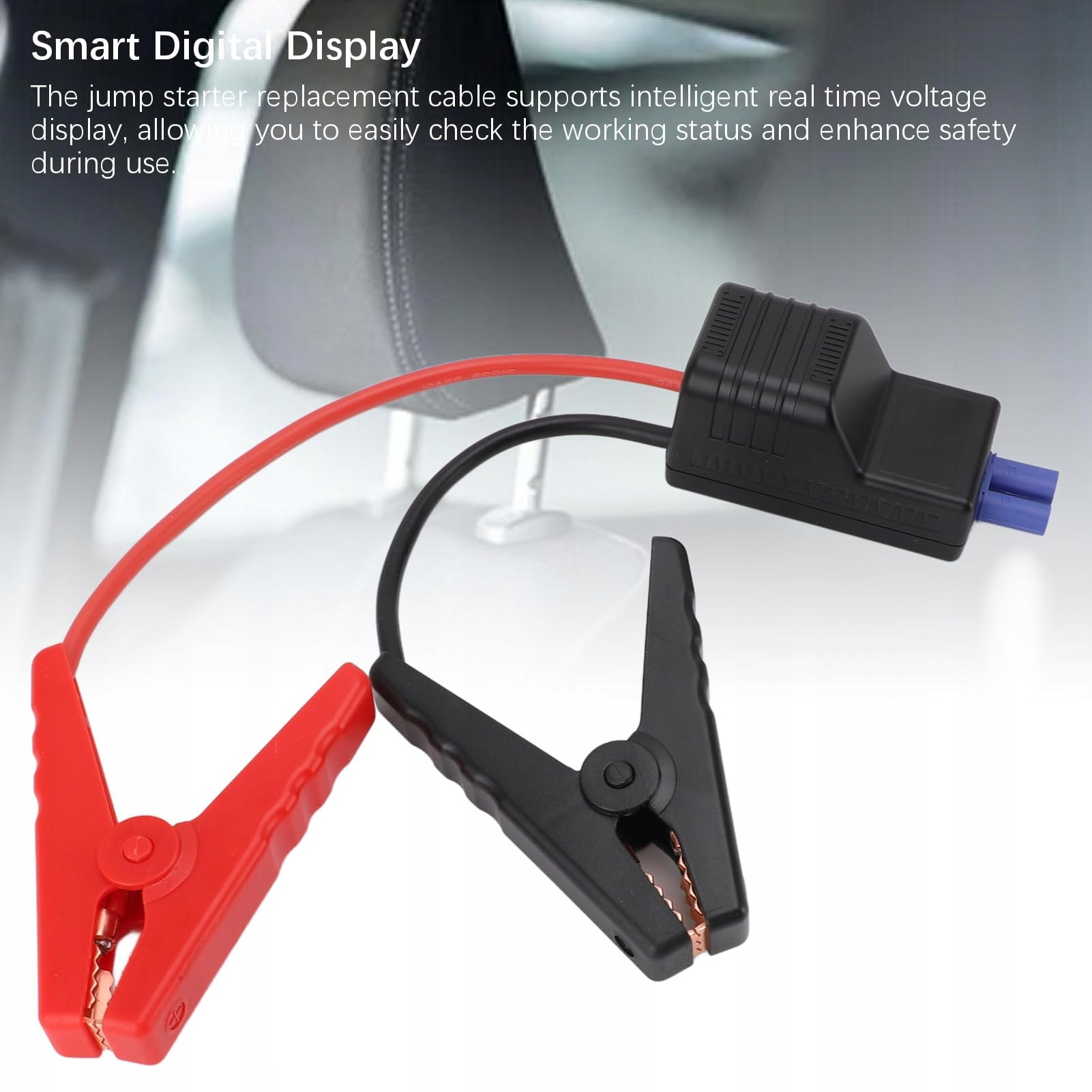 PRAKTYCZNY DESIGN: Końcówka wyjściowa inteligentnego kabla do przenośnego rozruchu akumulatora posiada gniazdo EC5, które jest kompatybilne z męskimi złączami wyjściowymi EC5 większości wzmacniaczy akumulatorowych 12 V. Ten design typu plug-and-play oszczędza czas podczas uruchamiania pojazdu awaryjnego i znacznie poprawia wygodę obsługi.
