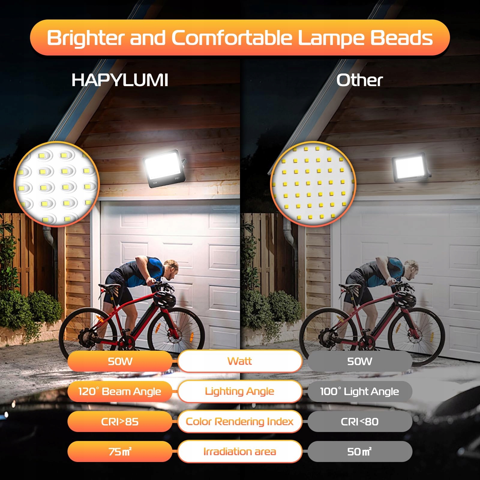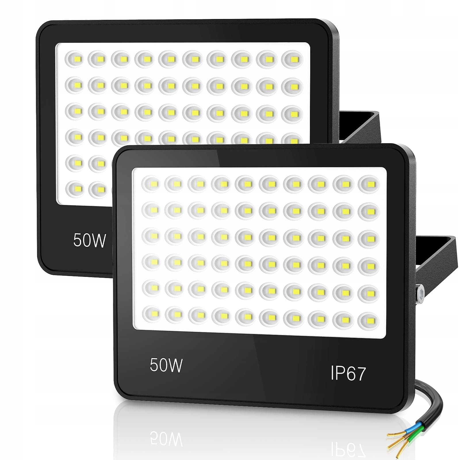 HAPYLUMI 50W LED reflektor zewnętrzny, 2 sztuki superjasne 5000LM LED reflektory 6500K zimna biel reflektory zewnętrzne, wodoodporny IP67 na ogród, podwórko, taras, garaż