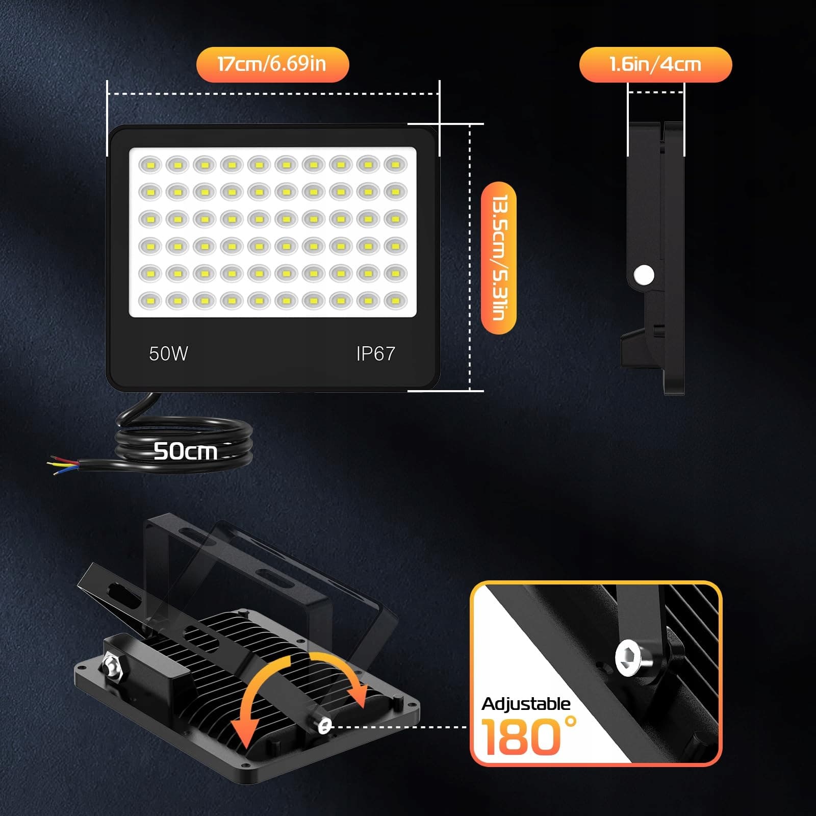 Odporność na warunki atmosferyczne LED reflektora zewnętrznego: Dzięki wodoodporności IP67 nasz reflektor LED jest idealny na wszystkie warunki zewnętrzne, w tym deszcz, śnieg i ekstremalne temperatury. Zainwestuj w oświetlenie, które wytrzyma i działa niezależnie od pogody!