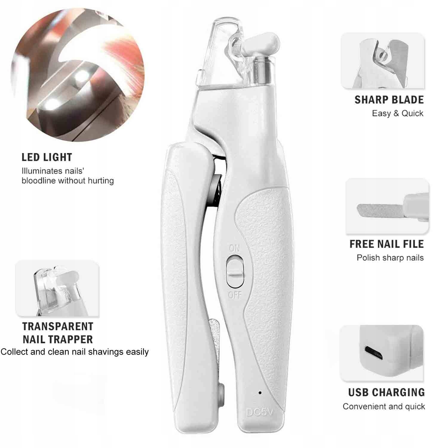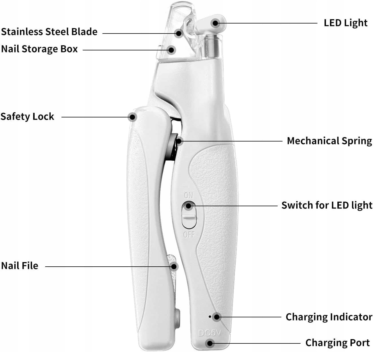 [Super jasne światło LED i łapacz paznokci] – oświetla linię krwi jasnych paznokci, dzięki czemu możesz obcinać paznokcie swojego zwierzaka we właściwym miejscu, nie raniąc go. Przezroczysty łapacz paznokci pomaga zbierać obcięte paznokcie do łatwego czyszczenia i zapobiega ich rozprzestrzenianiu się wszędzie.