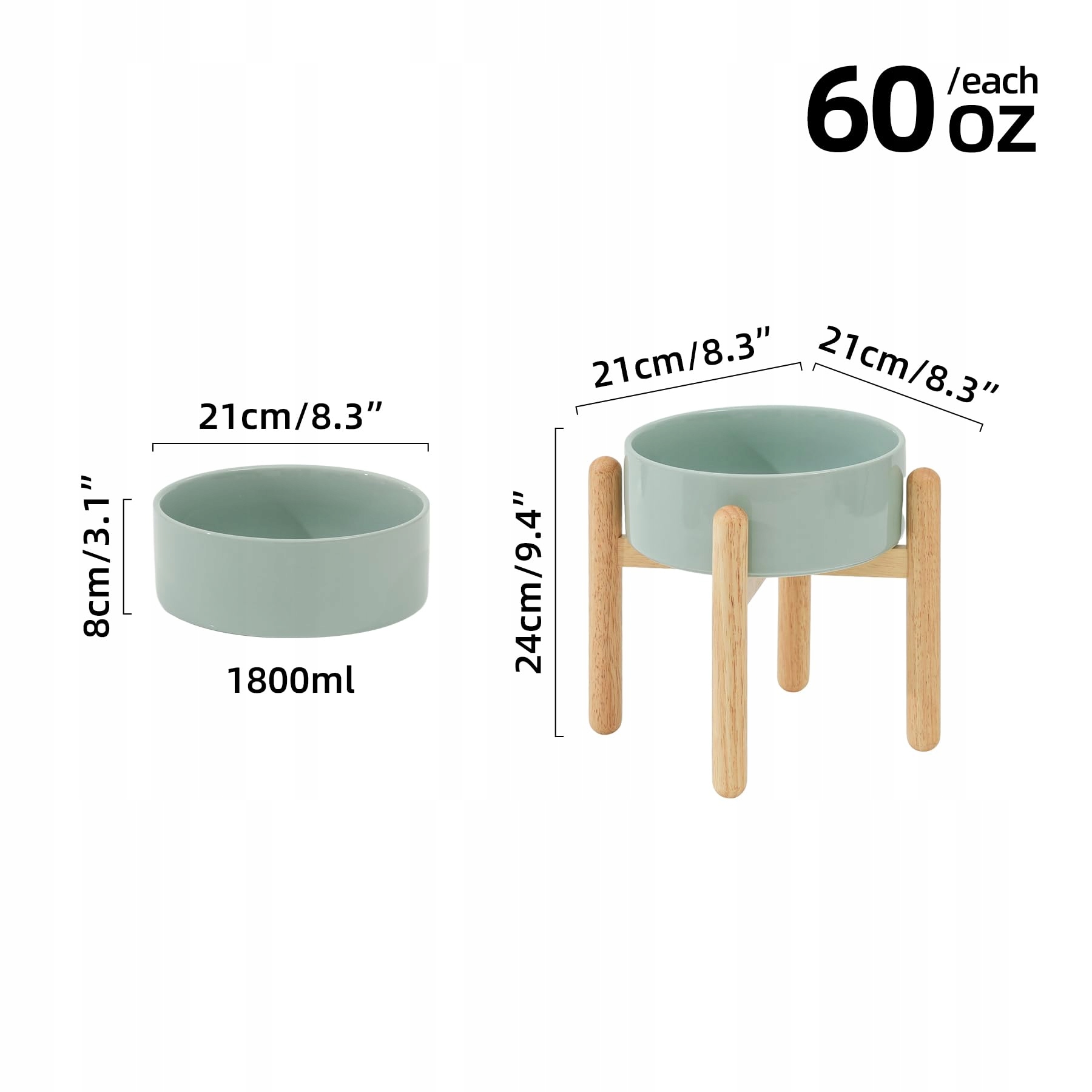 Havniva Ceramiczna Podwyższona Miska dla Psa Antypoślizgowa Miska dla Psa Regulowana Wysokość Miska na Jedzenie Miska dla Psa Średnia i Duża Miska na Wodę dla Psa (21cm, 1 x Miska ze Stojakiem - Jasnozielona)
