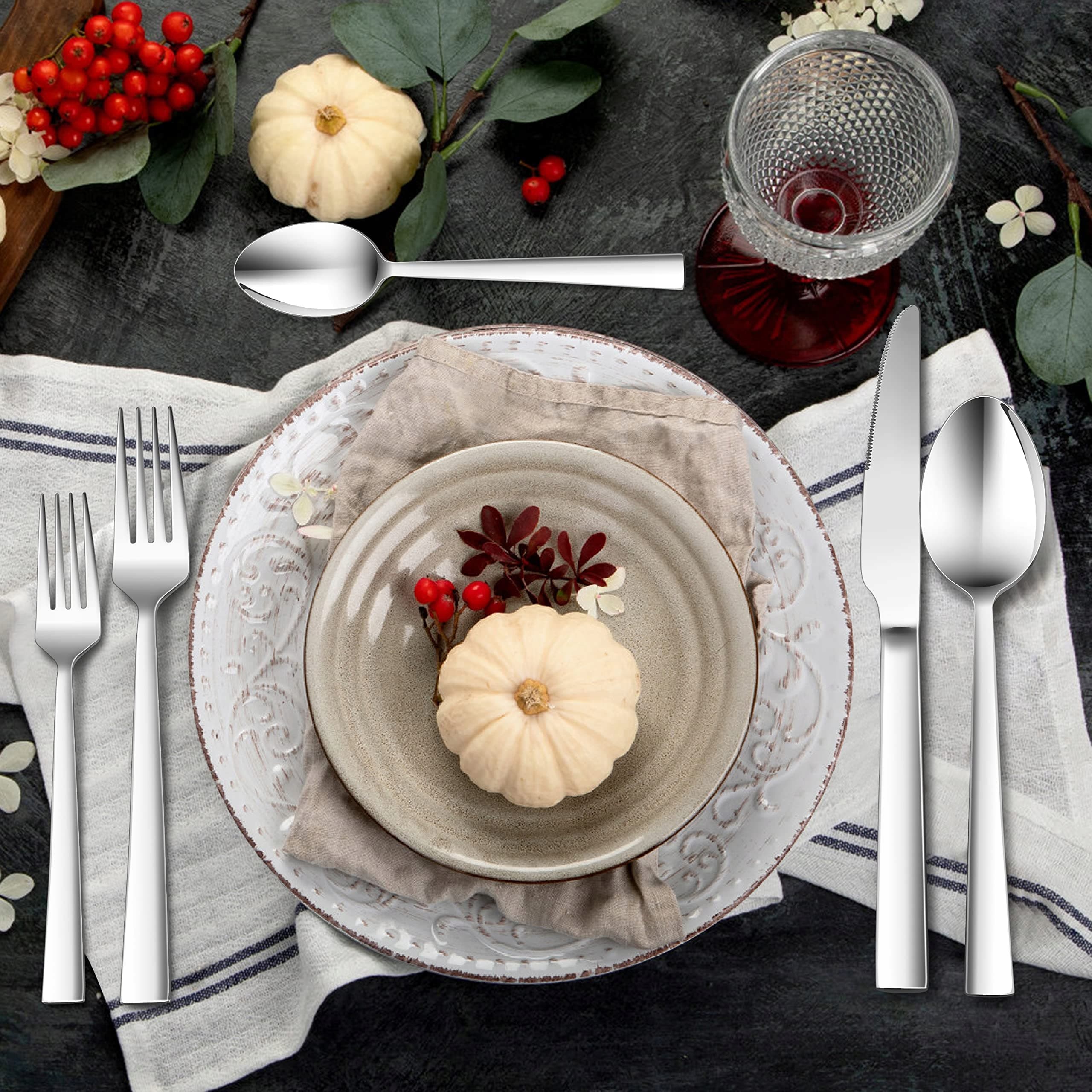 【Wytrzymały i trwały】 - Ten zestaw sztućców wykonany jest z wysokiej jakości stali nierdzewnej, wolny od jakichkolwiek toksycznych substancji, odporny na rdzę i korozję, wolny od niklu, solidna konstrukcja, niełatwy do wygięcia, zdrowy i trwały do codziennego użytku, łatwy do czyszczenia i nadający się do mycia w zmywarce, co pozwala zaoszczędzić czas i pracę