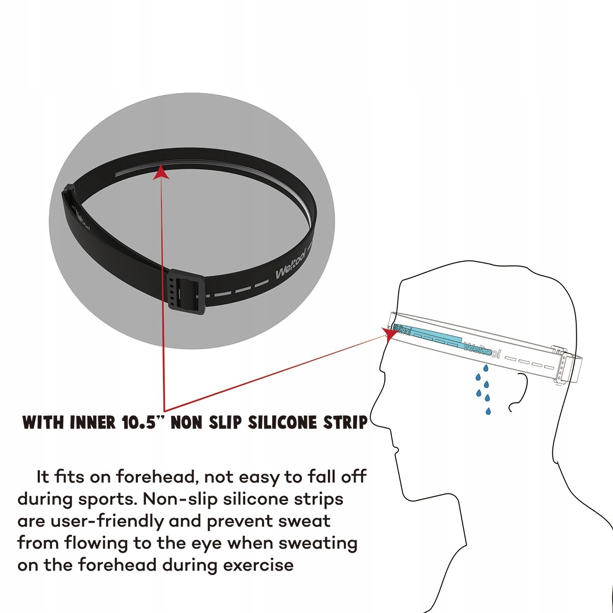 Materiał: bardzo elastyczna taśma (rozciągliwa długość), szerokość 2,5 cm podwójna, specjalnie wykonana, nie mechaci się łatwo. Wewnątrz 26,7 cm antypoślizgowy pasek silikonowy, dopasowuje się do czoła, nie spada łatwo podczas sportu. Antypoślizgowy pasek silikonowy jest przyjazny dla użytkownika i zapobiega spływaniu potu do oczu podczas intensywnych ćwiczeń.