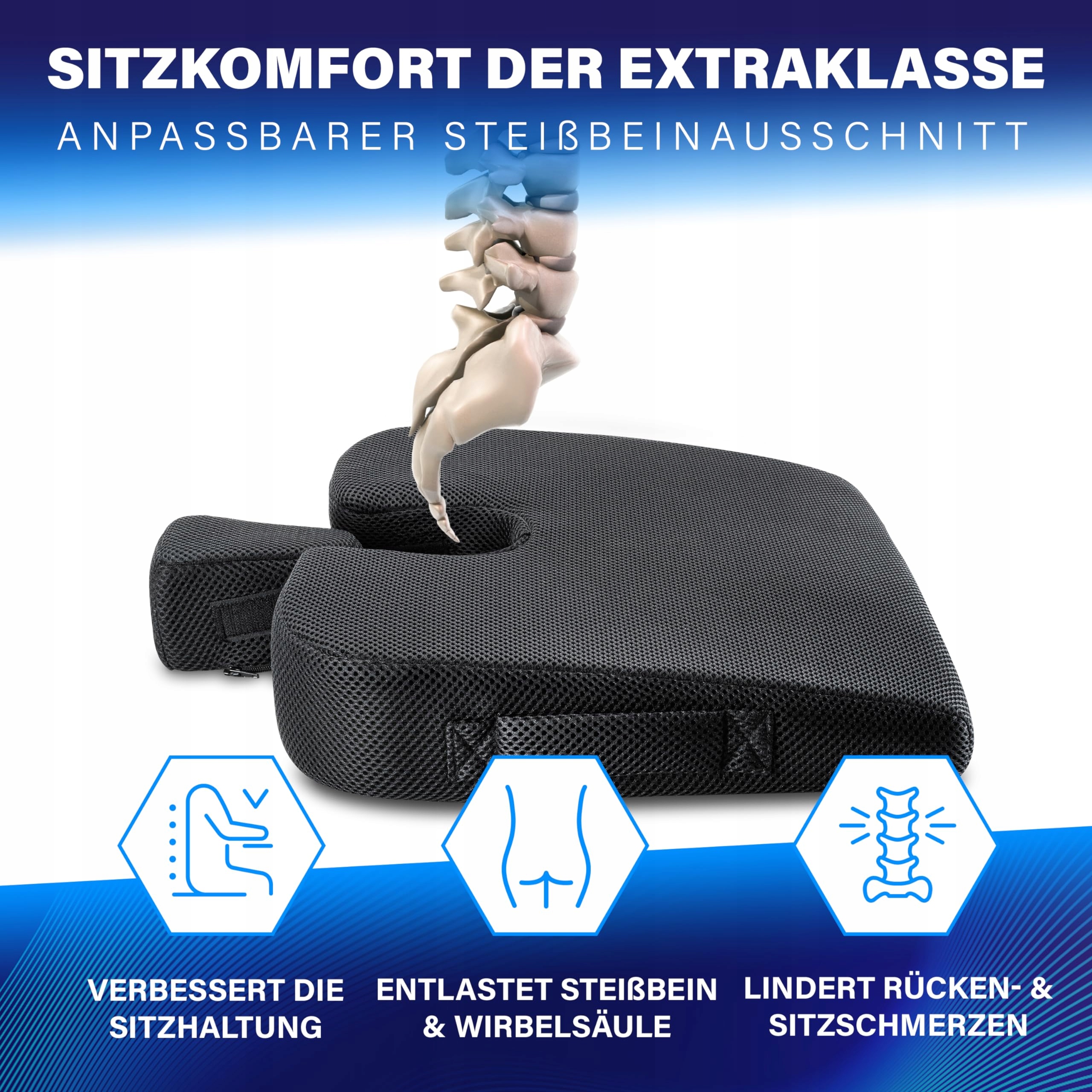 POLECANE PRZEZ ORTOPEDÓW - Odłączana poduszka na kość ogonową umożliwia optymalne odciążenie kości ogonowej i kręgosłupa.