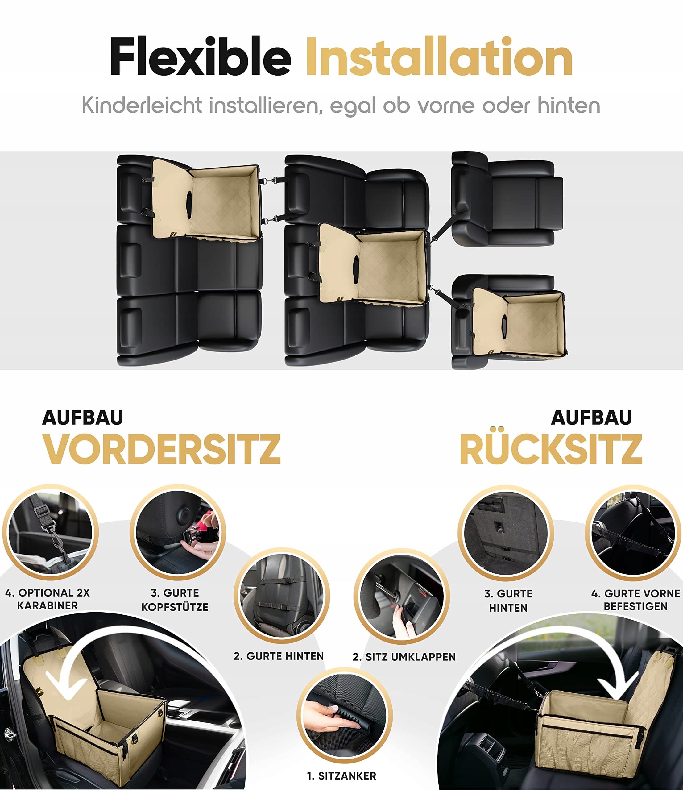 SZYBKI I ŁATWY MONTAŻ – Montaż samochodowego siedzenia dla psa zajmuje tylko cztery proste kroki. Lekki i kompaktowy do przechowywania. Ponadto łatwe czyszczenie dzięki łatwemu w pielęgnacji i wytrzymałemu materiałowi Oxford 600D.