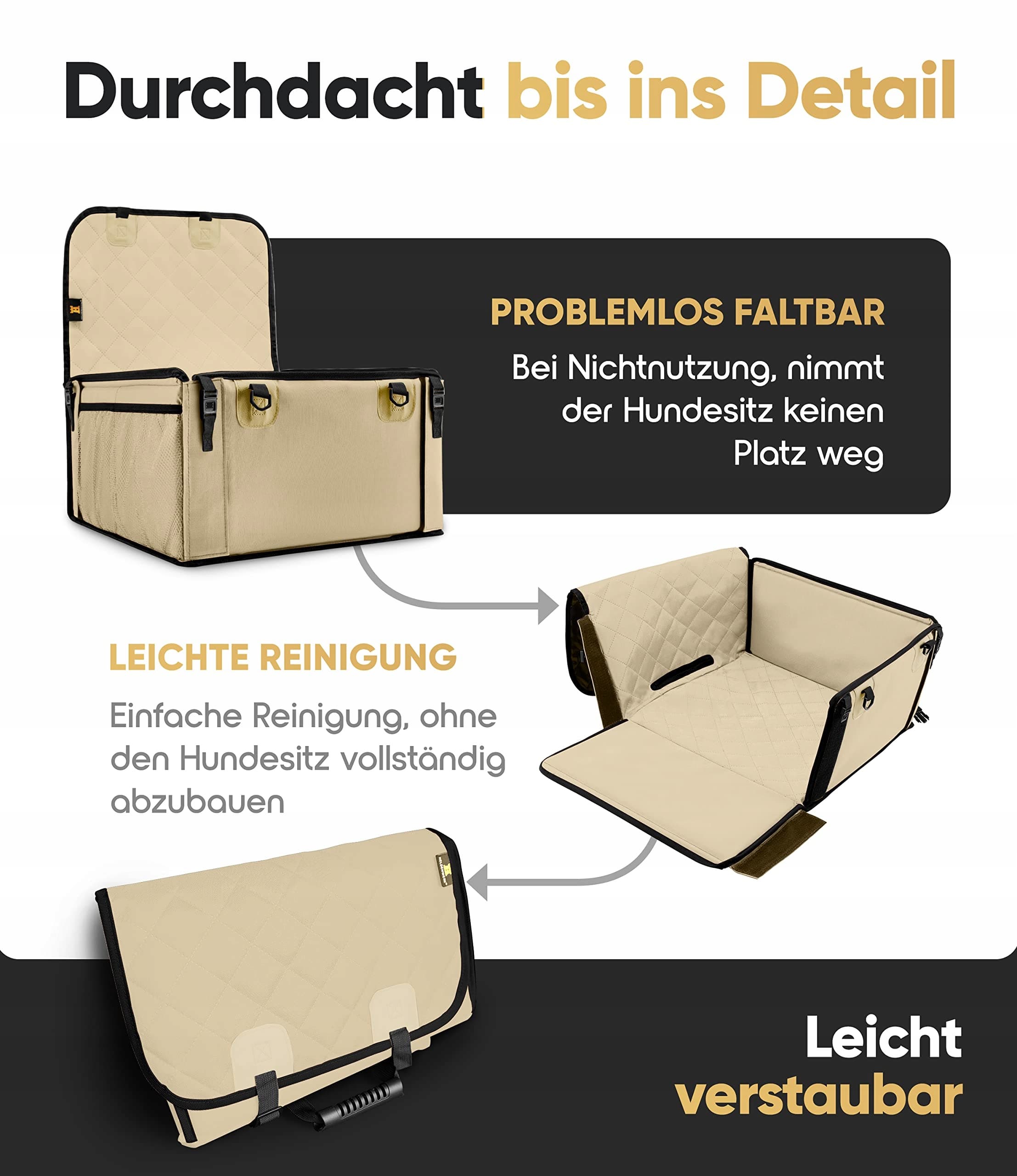 HELDENWERK Stabilny Wodoodporny Fotelik Samochodowy Dla Psów Z Wzmocnionymi Ścianami I 5 Paskami Na Tylne I Przednie Siedzenie