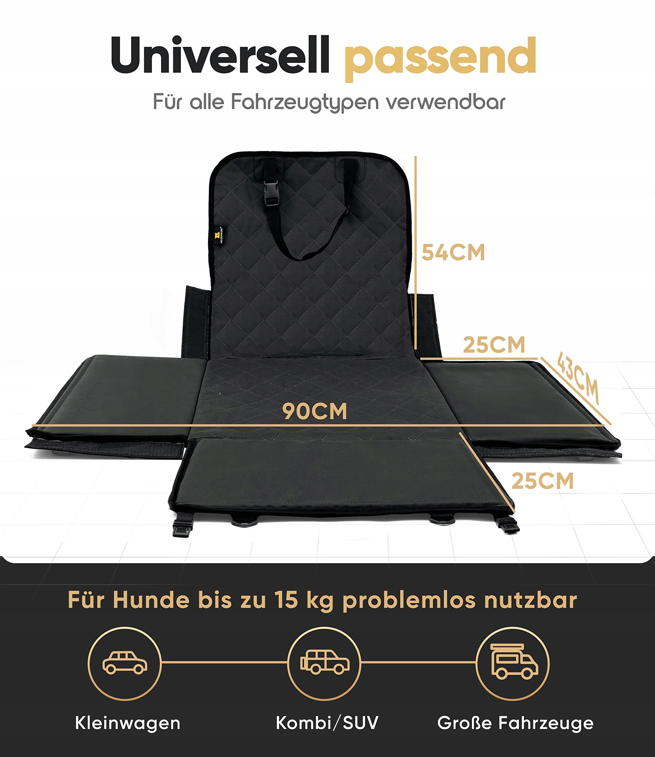 HELDENWERK Wodoodporny Samochodowy Fotel Dla Psa Wzmocnione Ściany 5 Pasków