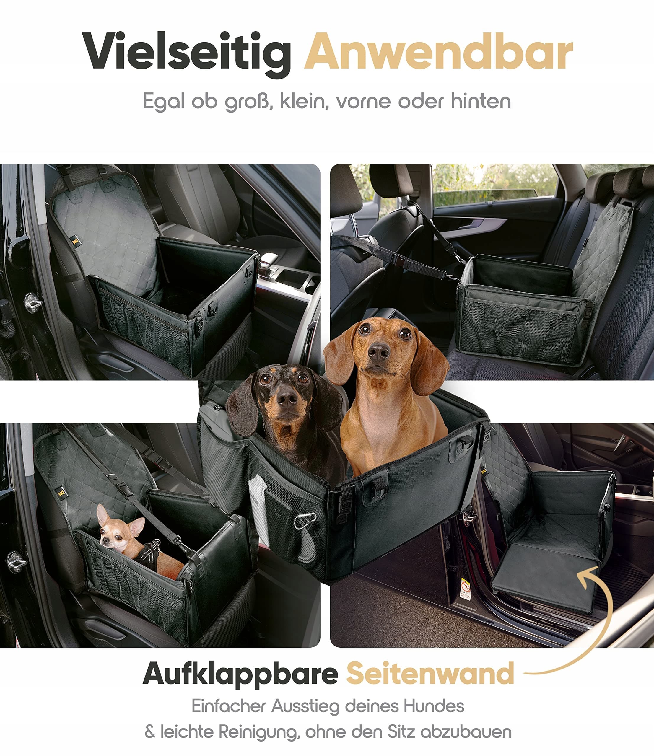 MAKSYMALNE BEZPIECZEŃSTWO – Dzięki zintegrowanemu systemowi bezpieczeństwa klik, przypadkowe otwarcie jest niemożliwe. Ponadto każda ściana jest podwójna i miękko wyściełana oraz wzmocniona prętem z włókna szklanego. Regulowana smycz dla psa chroni Twojego zwierzaka również podczas mocnego hamowania.